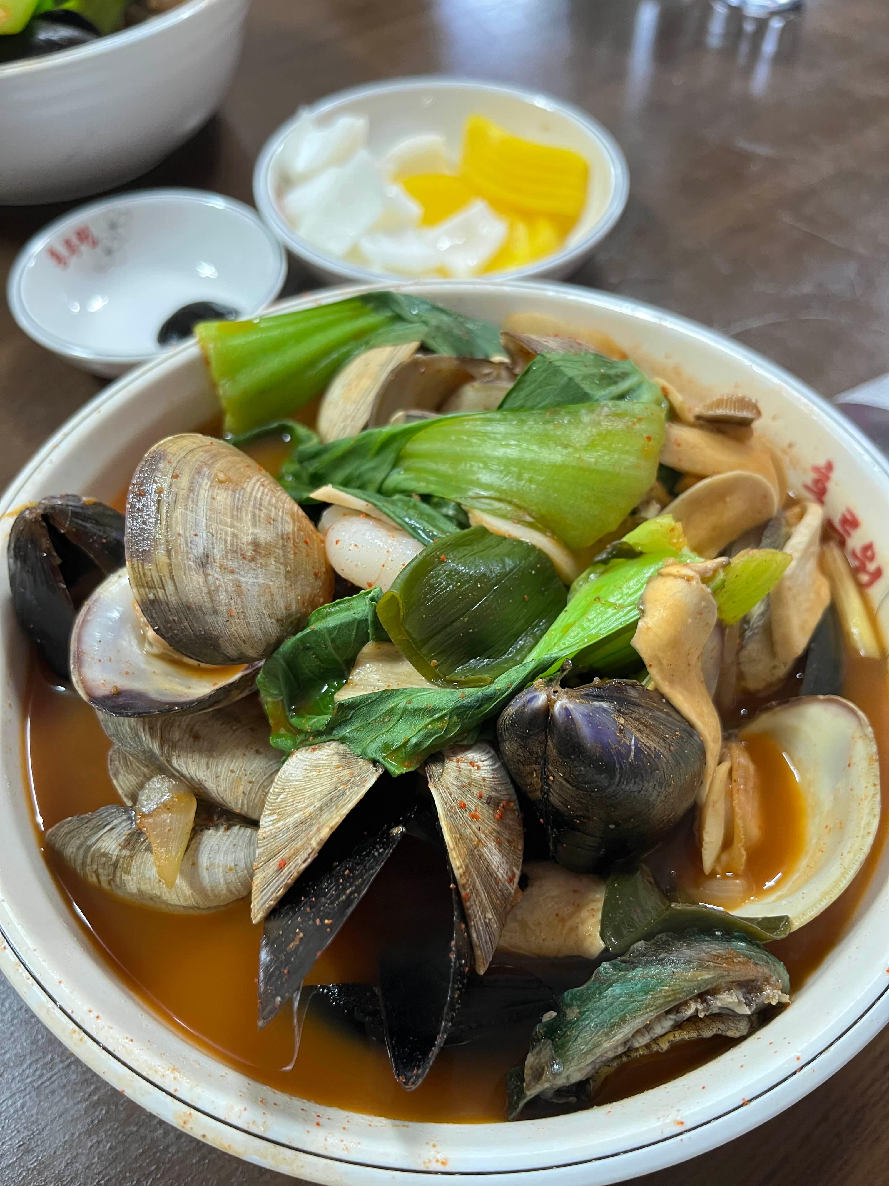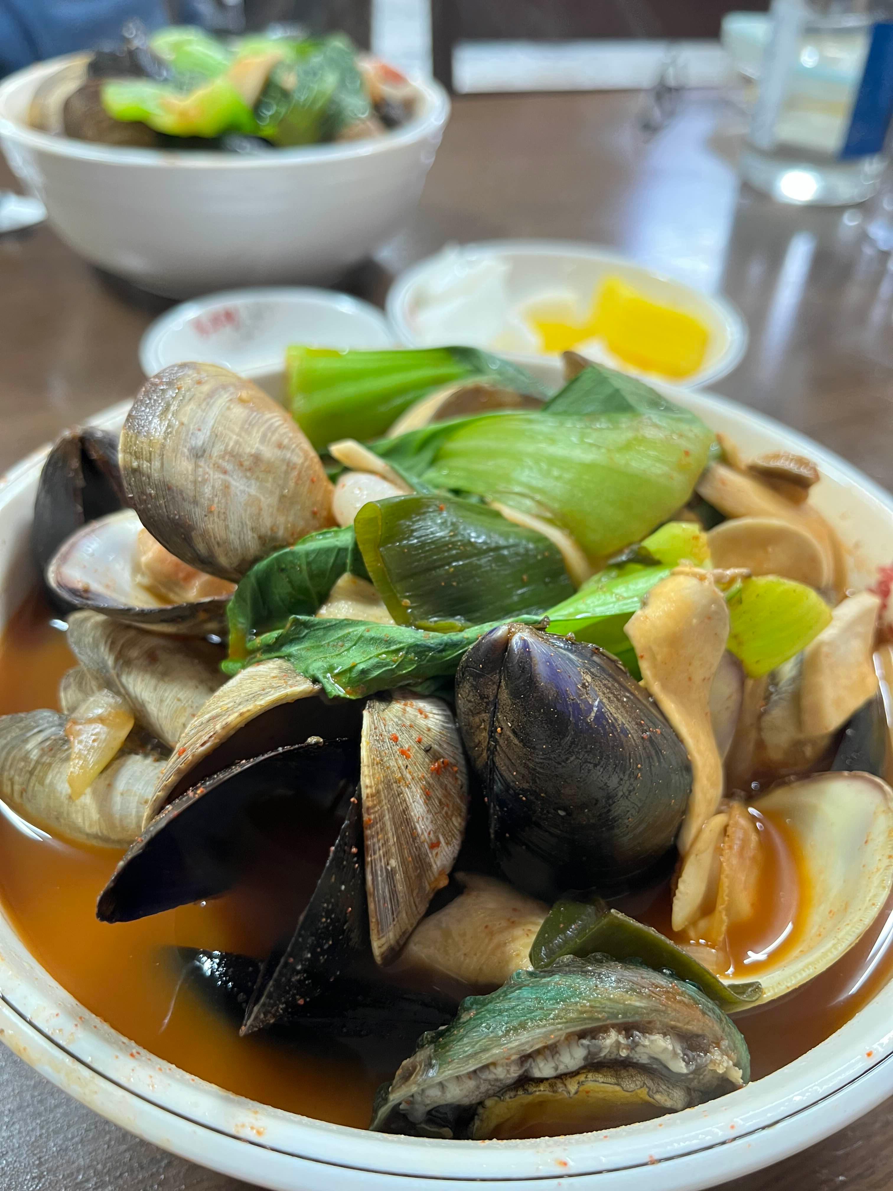 백합이 워낙 많이 들어 있어서요. 하나하나 까먹느라 손가락이 아플 정도였어요. ㅎ 그리고 말린 버섯이 많이 들어가 있어 식감도, 국물 맛도 깊이가 있어 더욱 좋았습니다.