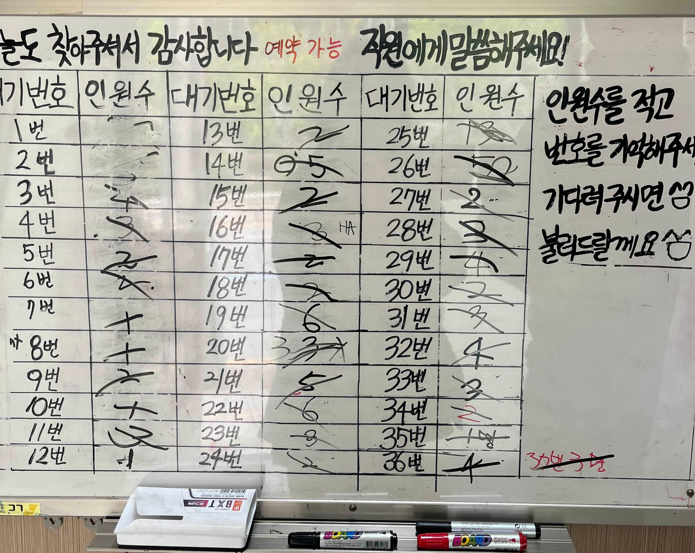 주문은 입구에 놓인 키오스크로 하시면 되는데요. 식당 내부를 둘러보신 후에 먼저 마음에 드는 테이블 번호도 함께 확인하셔야 돼요.