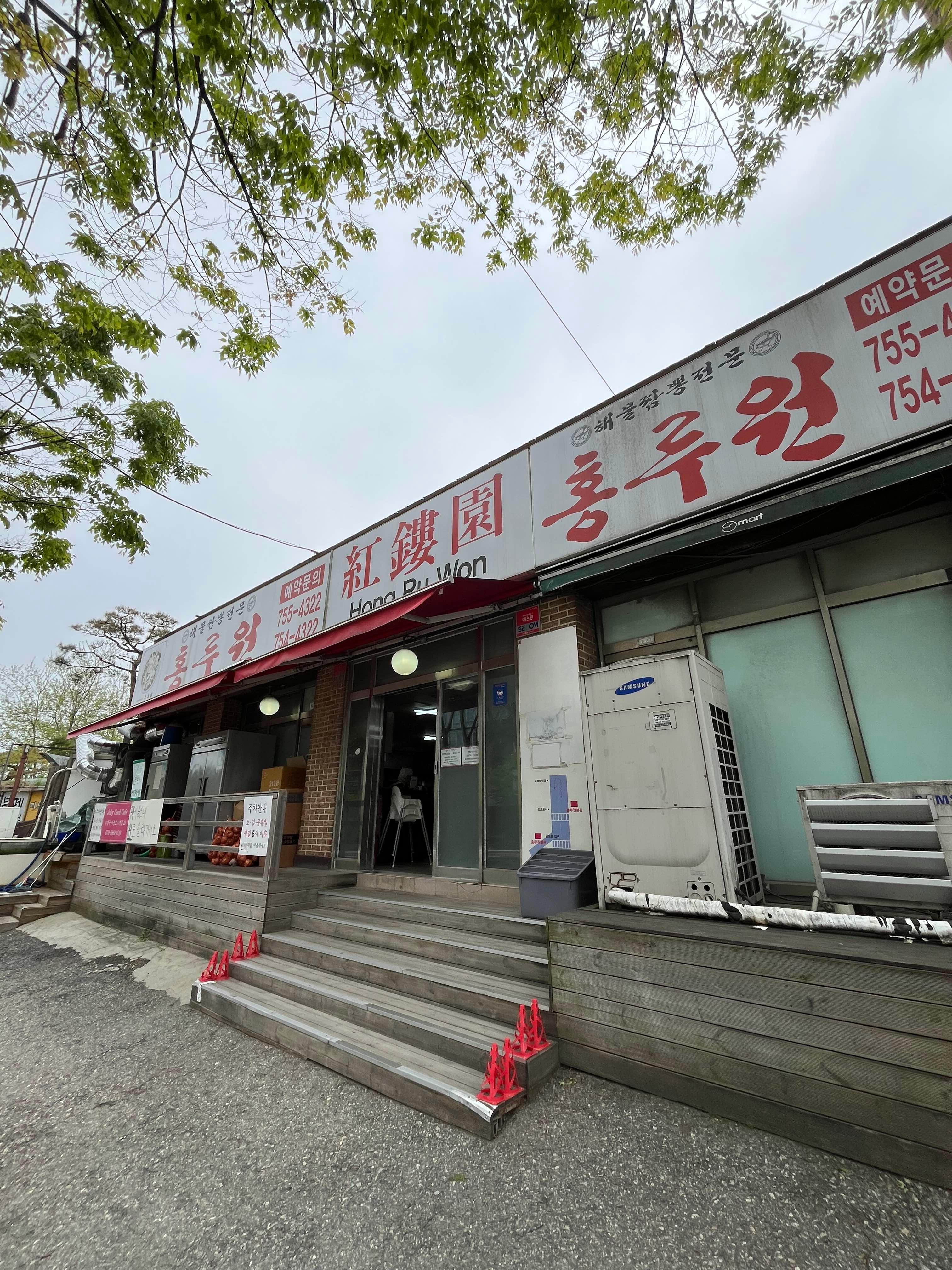 저는 지난 주말에 남편과 함께 드라이브를 나갔다가 홍루원에 점심을 먹으러 가게 되었는데요. 매장 앞 길가에 차를 세우셔도 되는데, 워낙 차량들이 길게 늘어서 있어 자리가 없을 수 있어요. 그런 경우에는 건물 우측으로 올라가셔서 주차장을 이용하시면 된답니다.