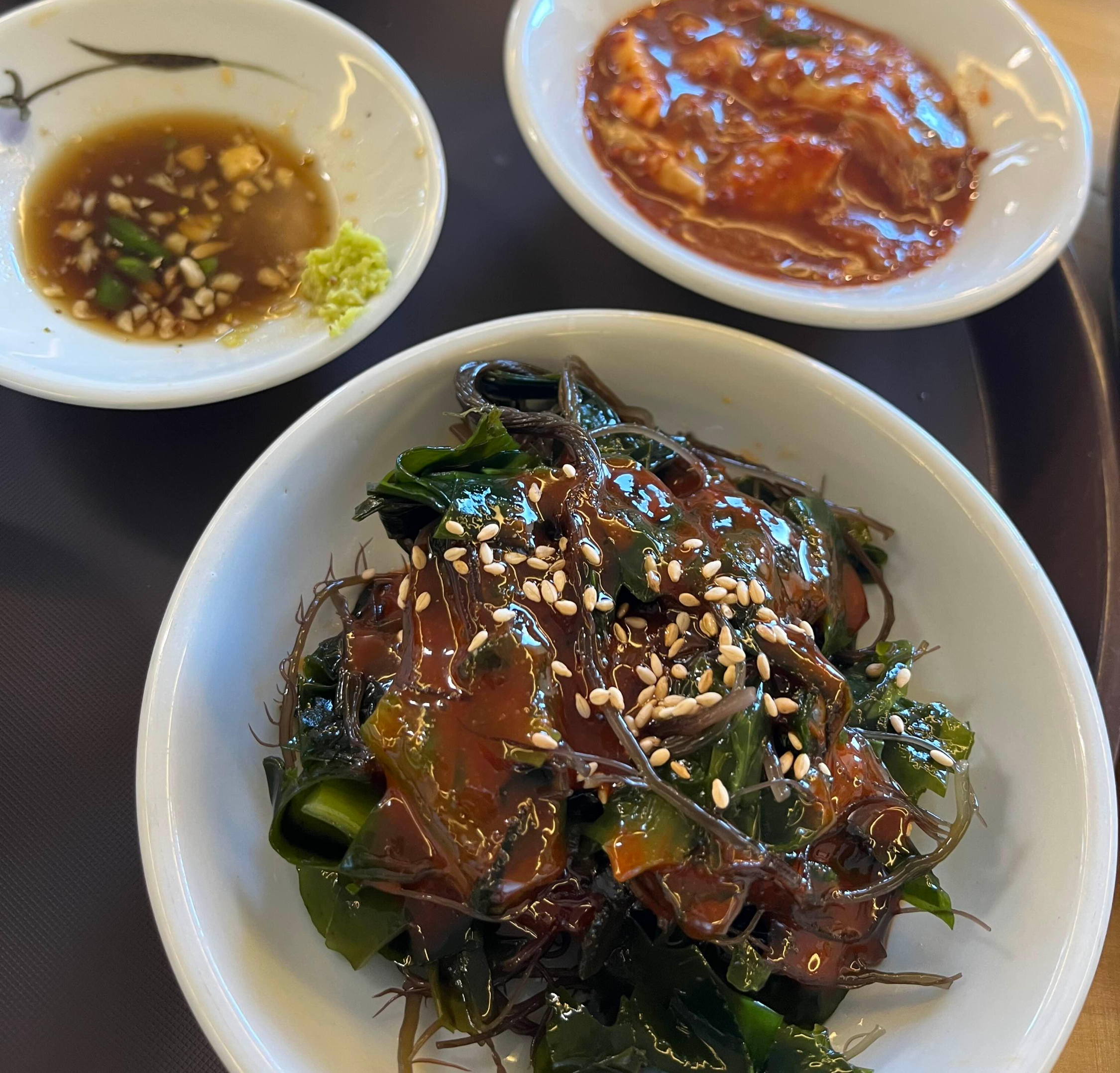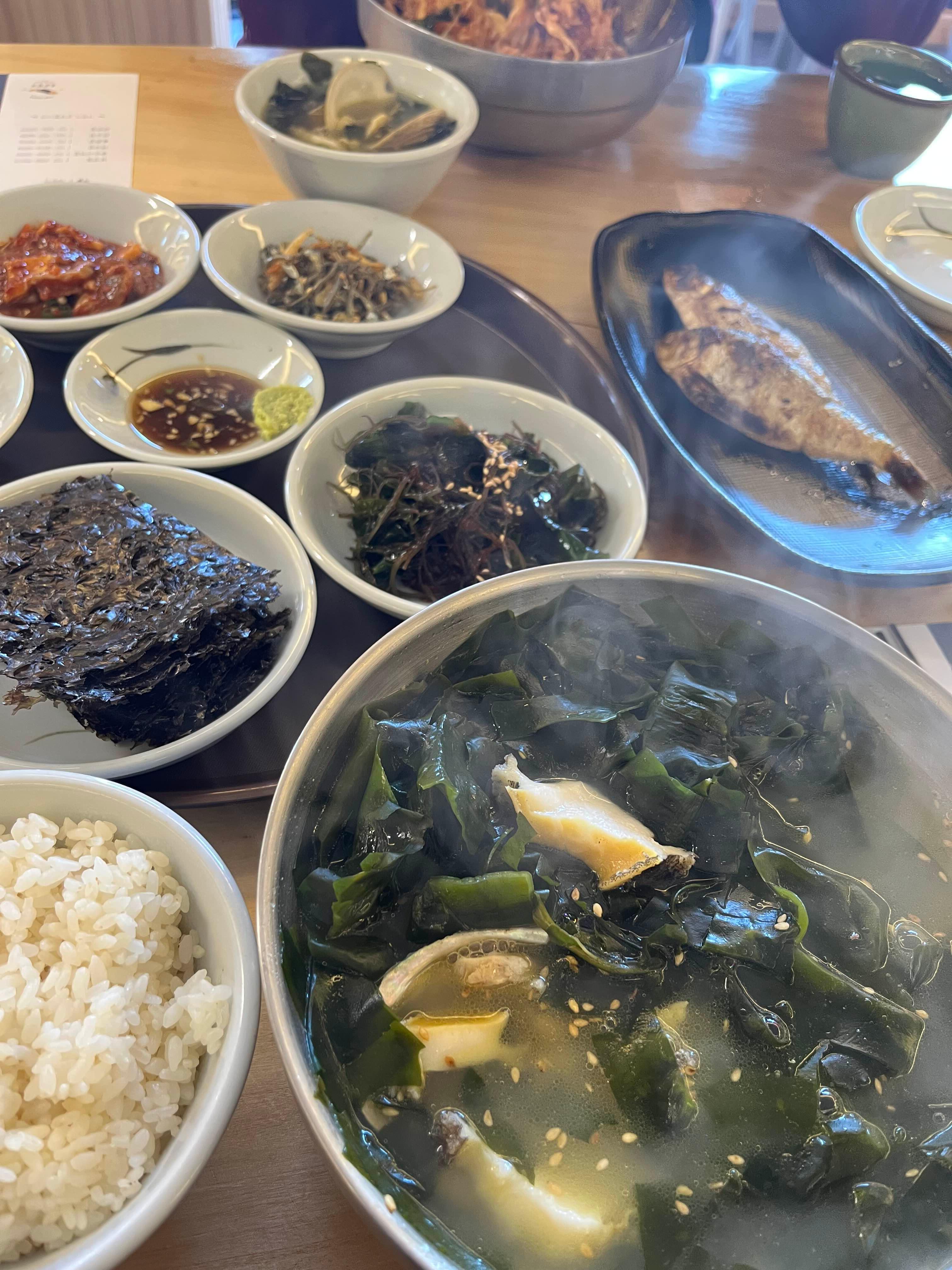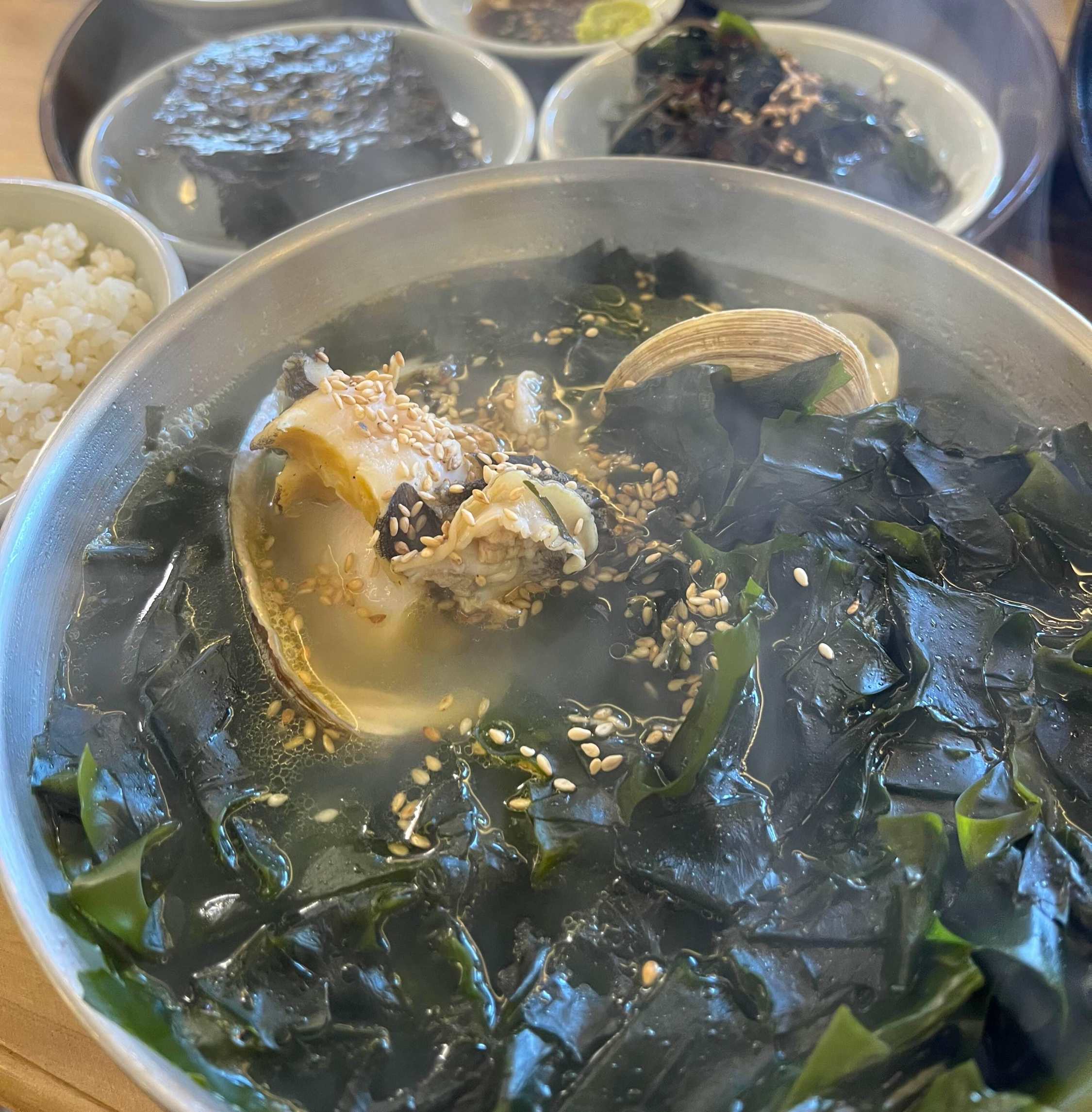목포명가의 전복미역국은 기장 생미역에 전복과 백합을 넣어 끓였더라고요. 미역국 양이 엄청 많아서 선배와 나눠 먹었습니다. 생미역이라서 그런지 식감이 넘 좋고 신선함이 그대로 느껴졌어요.