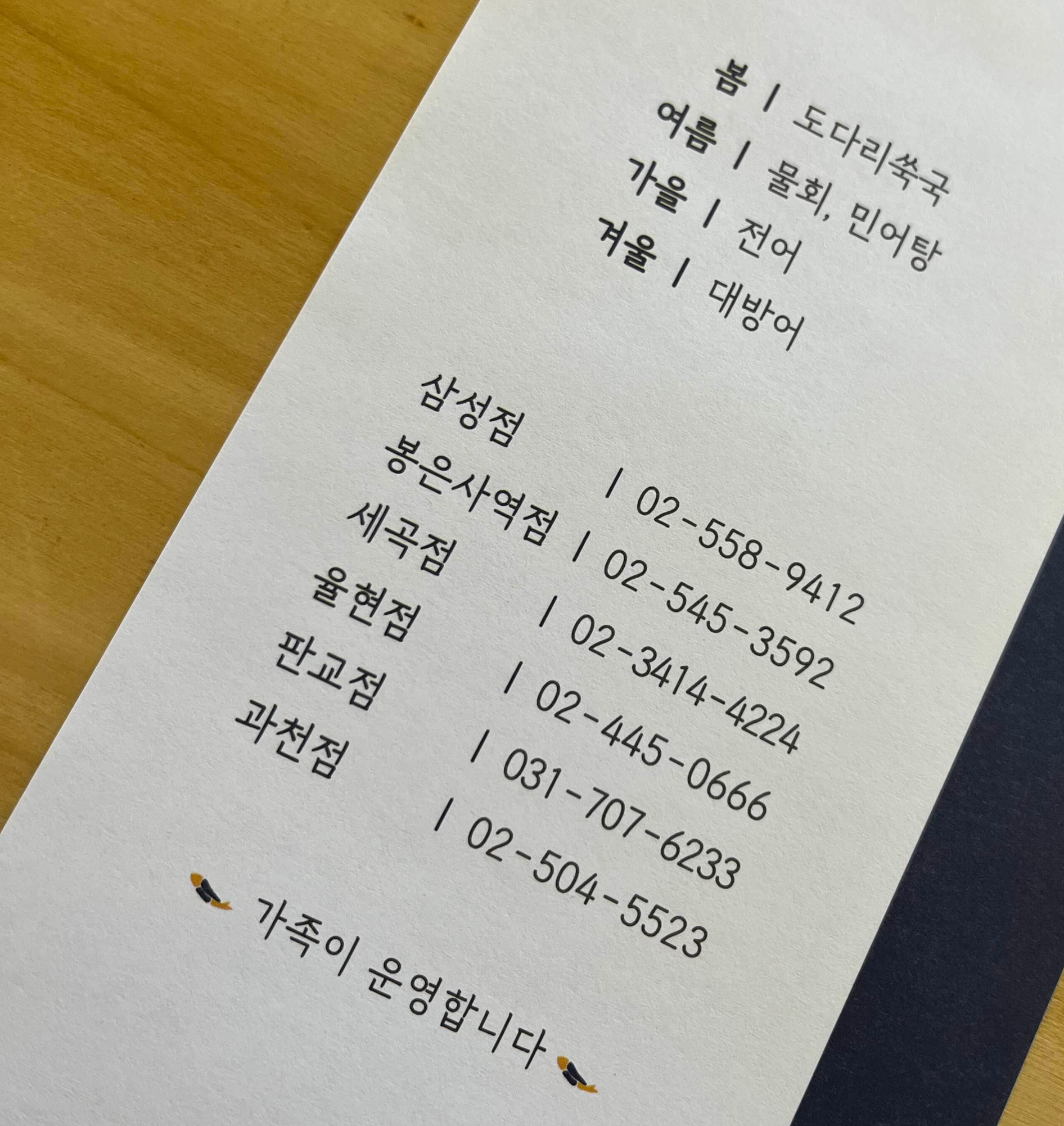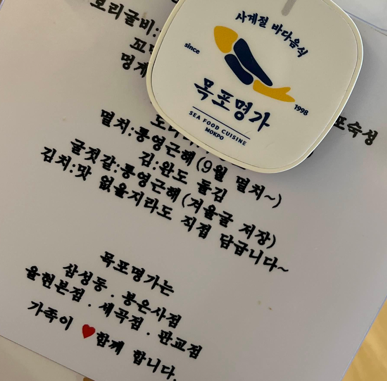 목포명가는 이곳 과천점 이외에도 삼성점과 봉은사역점, 세곡점, 율현점, 판교점이 있더라고요.