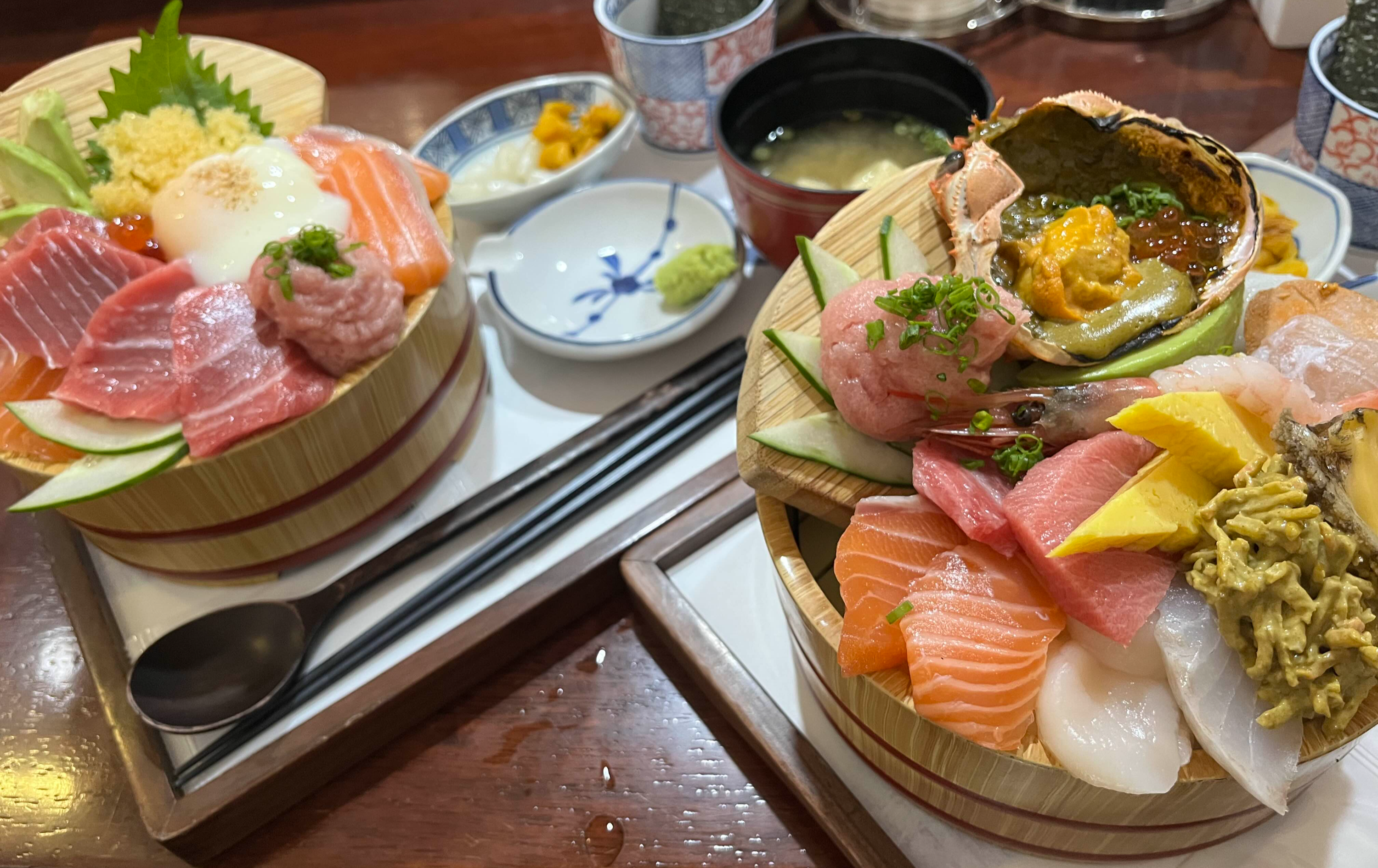 저희는 스페셜 우니도 카이센동과 혼마구로사케동을 주문했습니다. 우니도의 카이센동은 18피스 이상의 다양한 해산물이 가득한 모둠 해산물 덮밥인데요.