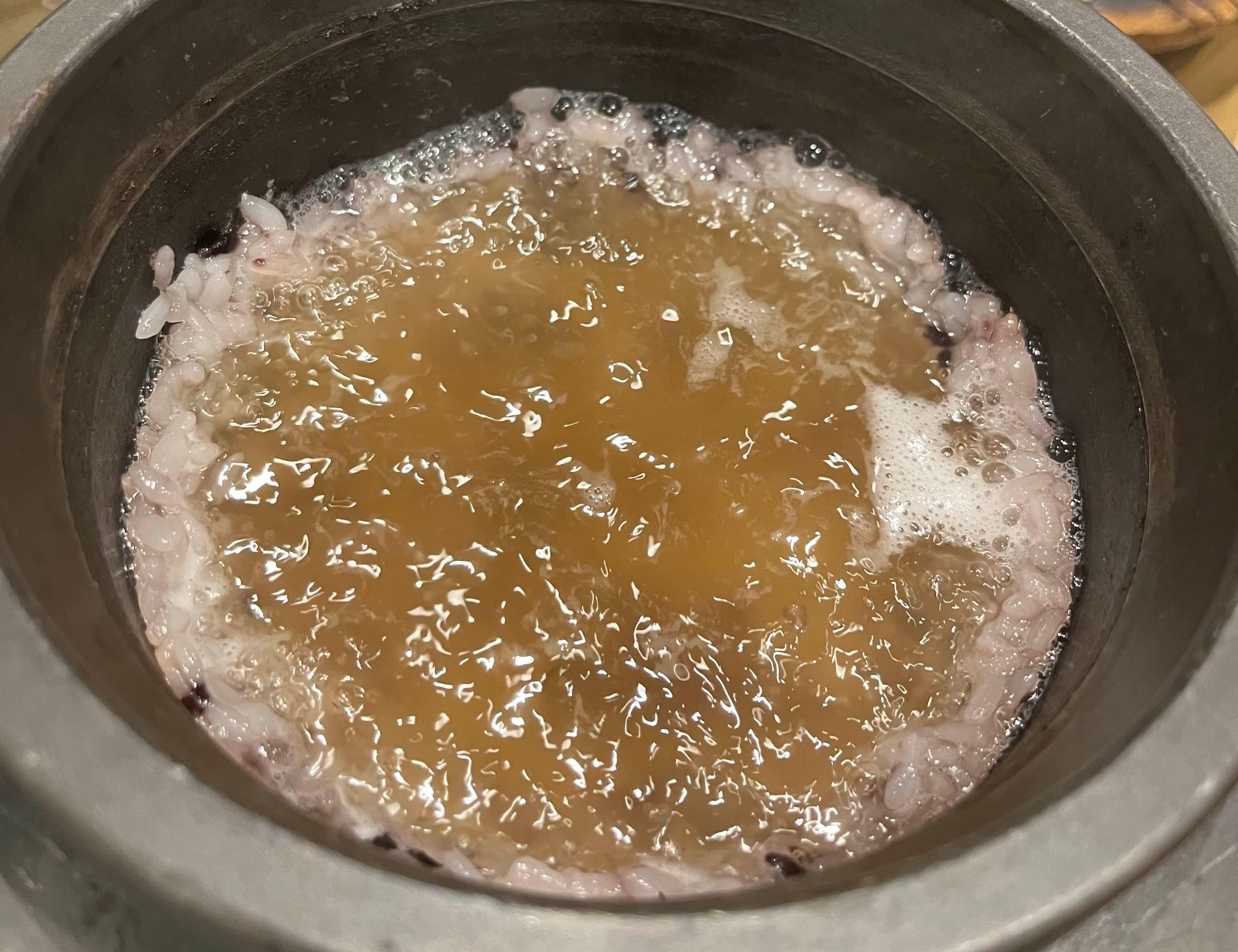 이곳 코다리명가 과천본점은 주문과 동시에 조리하기 때문에 요리시간이 15분 정도 소요될 수 있다고 안내되어 있었어요. 돌솥밥의 밥을 덜어내고 뜨거운 물을 부어 눌은밥으로 만들었습니다.