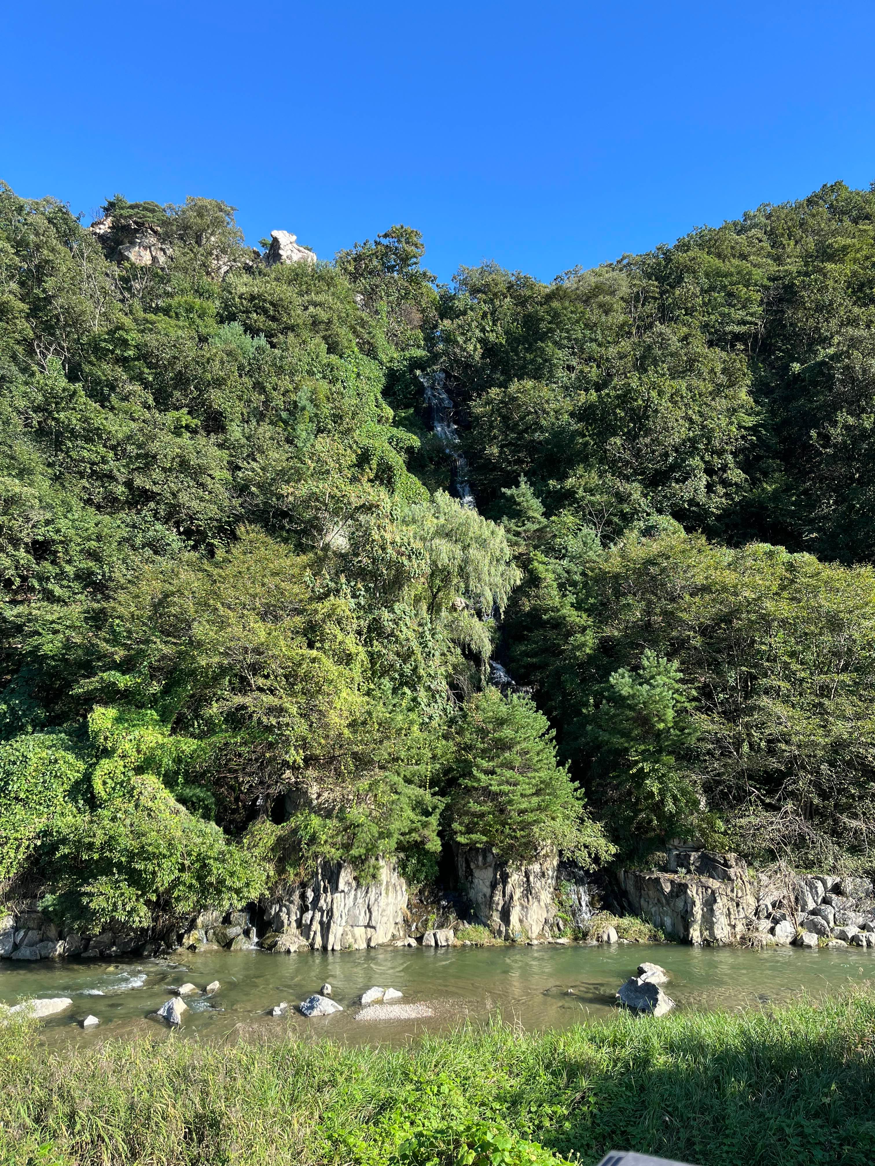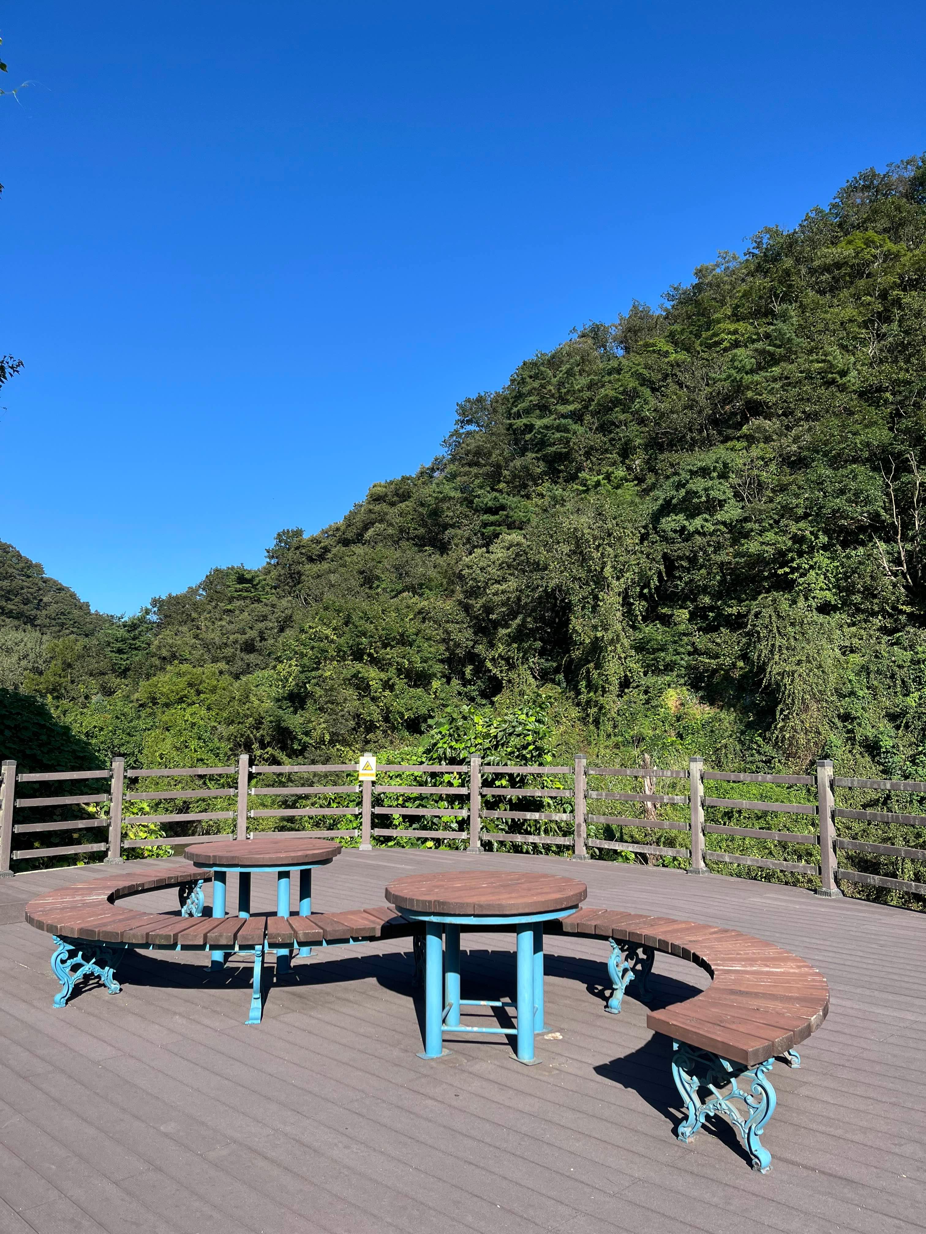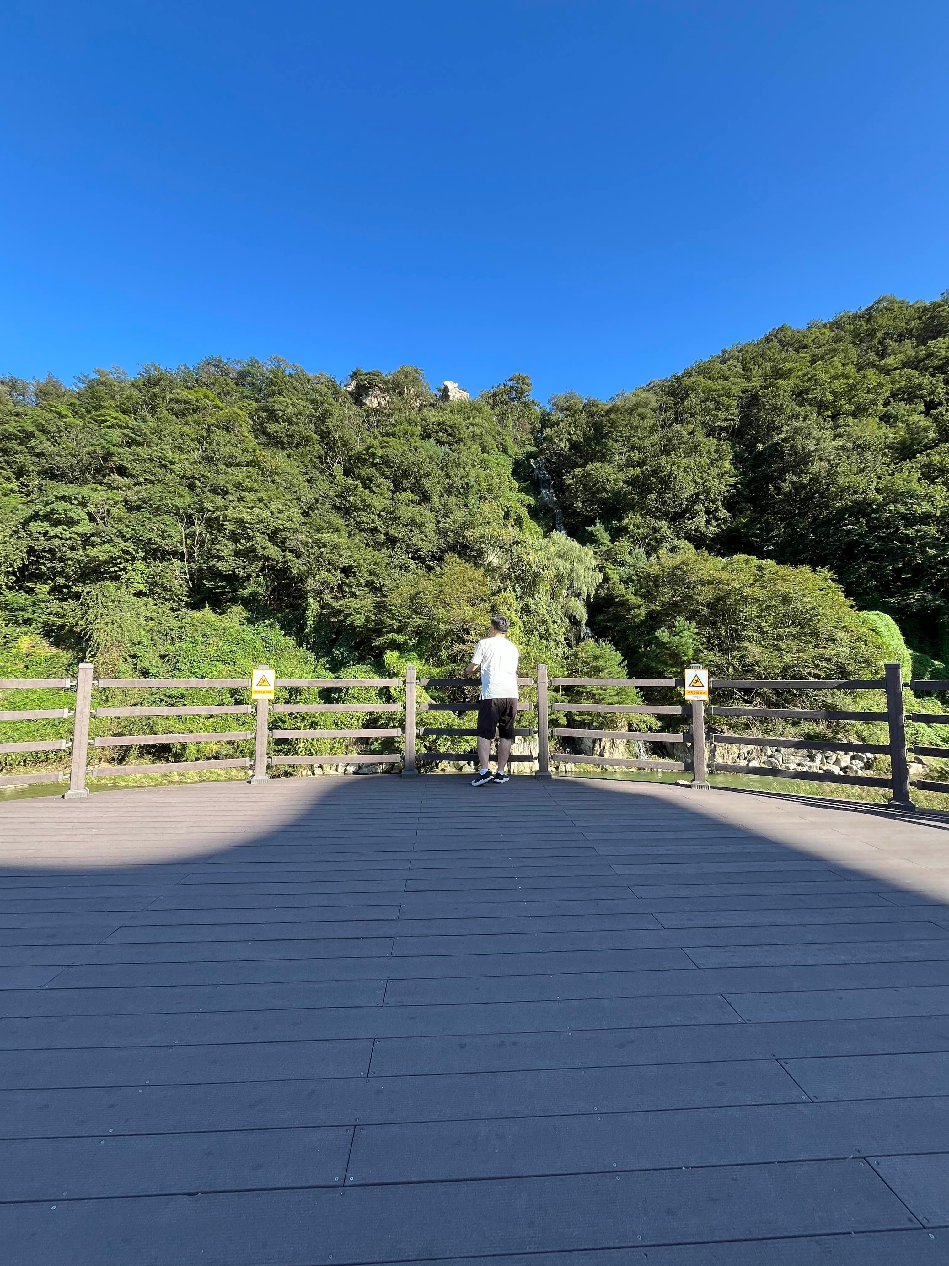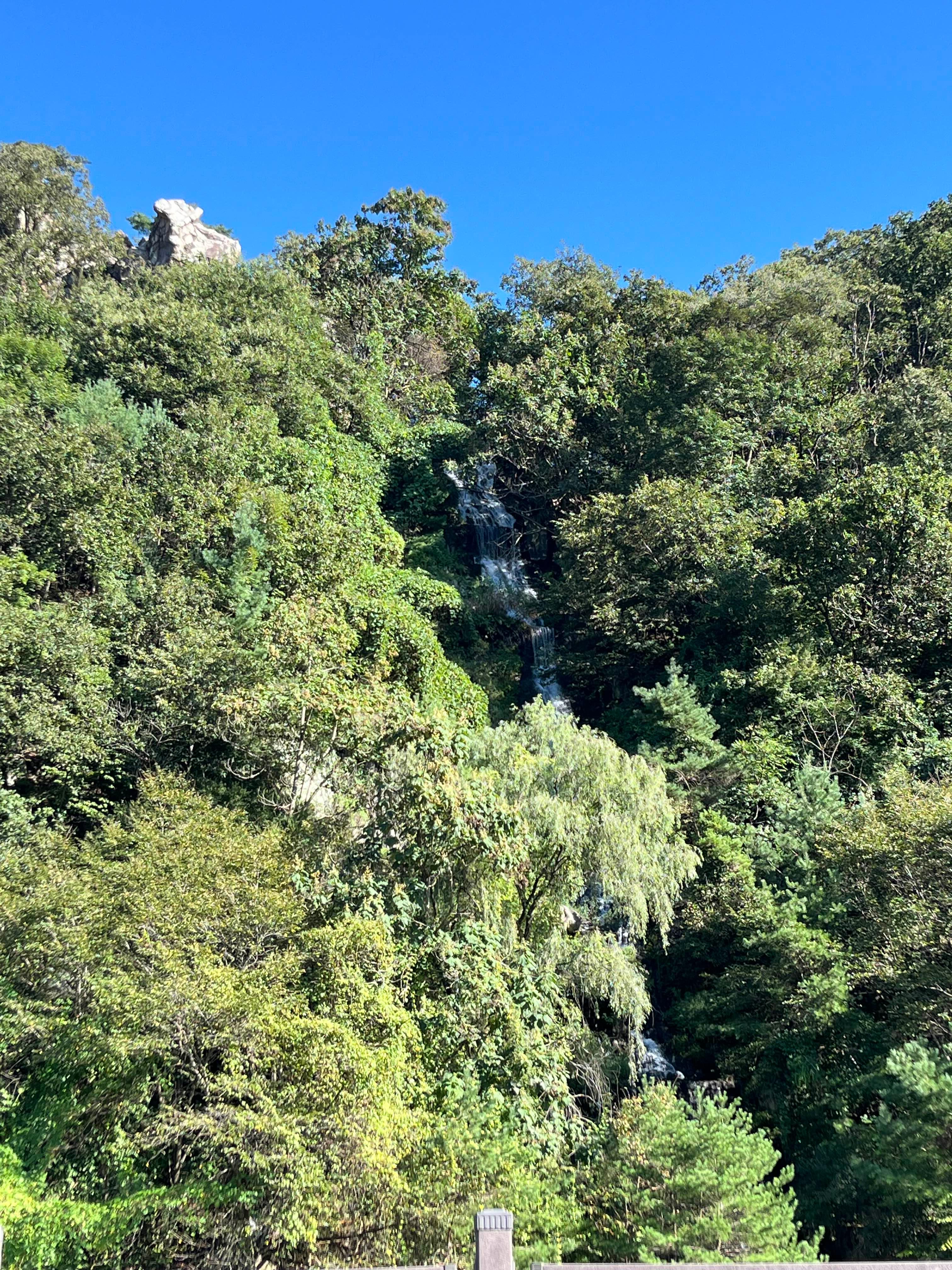 저 멀리 보이는 것이 피아노 폭포입니다. 피아노 폭포는 절개지에 철골 구조를 세우고 인공 암반 틀을 이용해 절벽을 만든 뒤 하수처리장에서 나오는 방류수를 펌프로 끌어올려 높이 61m 절벽에서 흘러내리게 하는 방식으로 운영된다고 하네요.