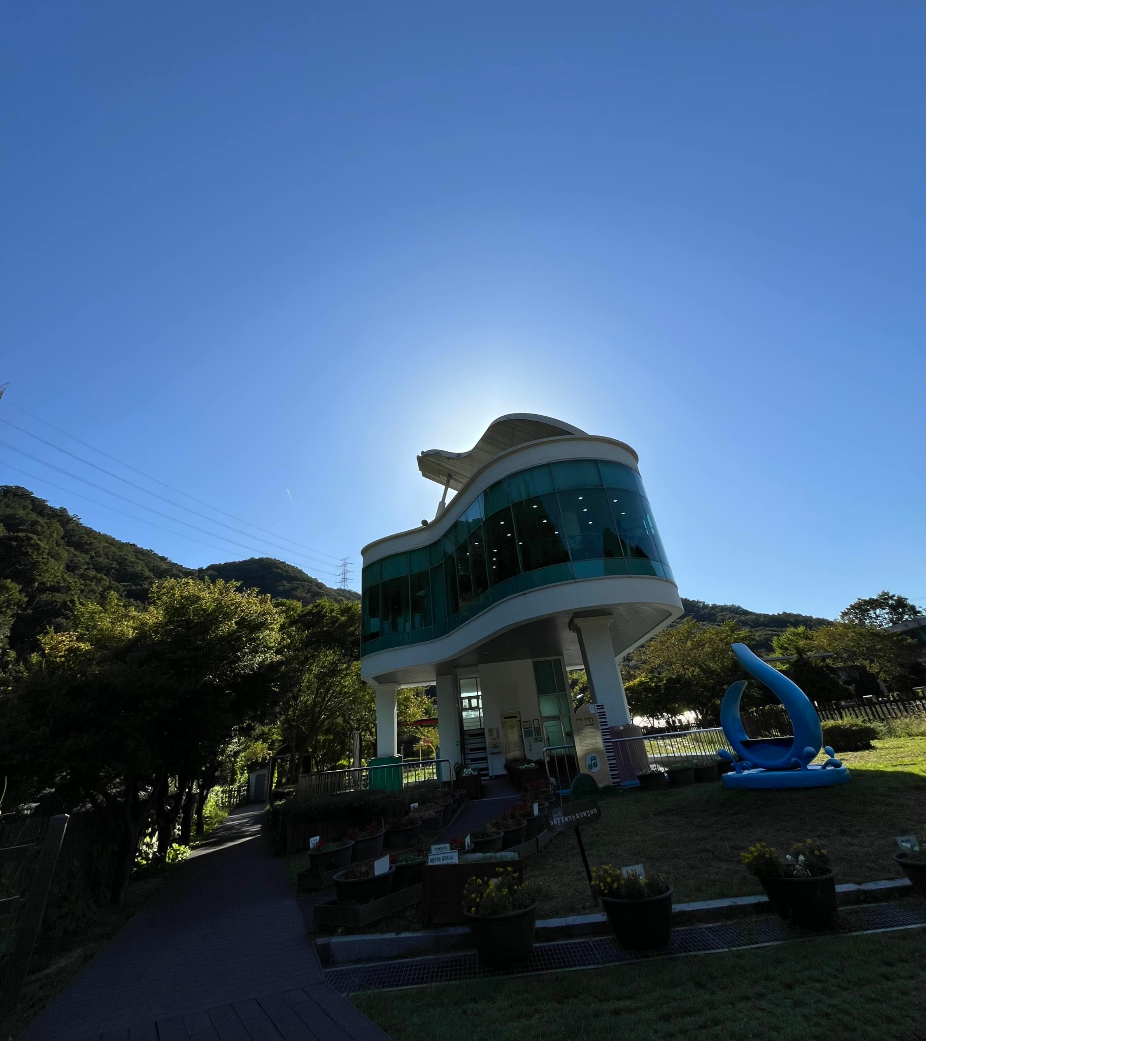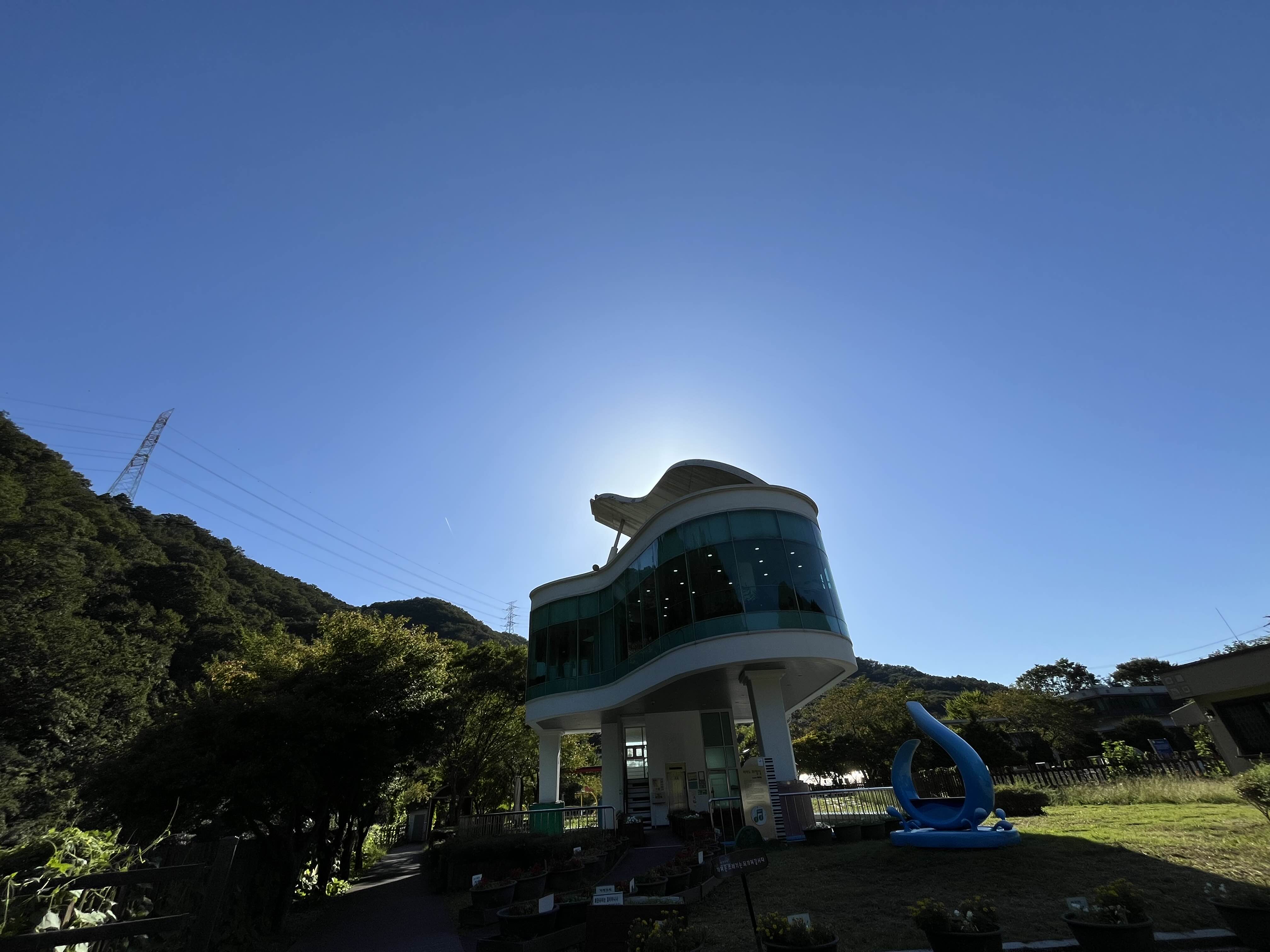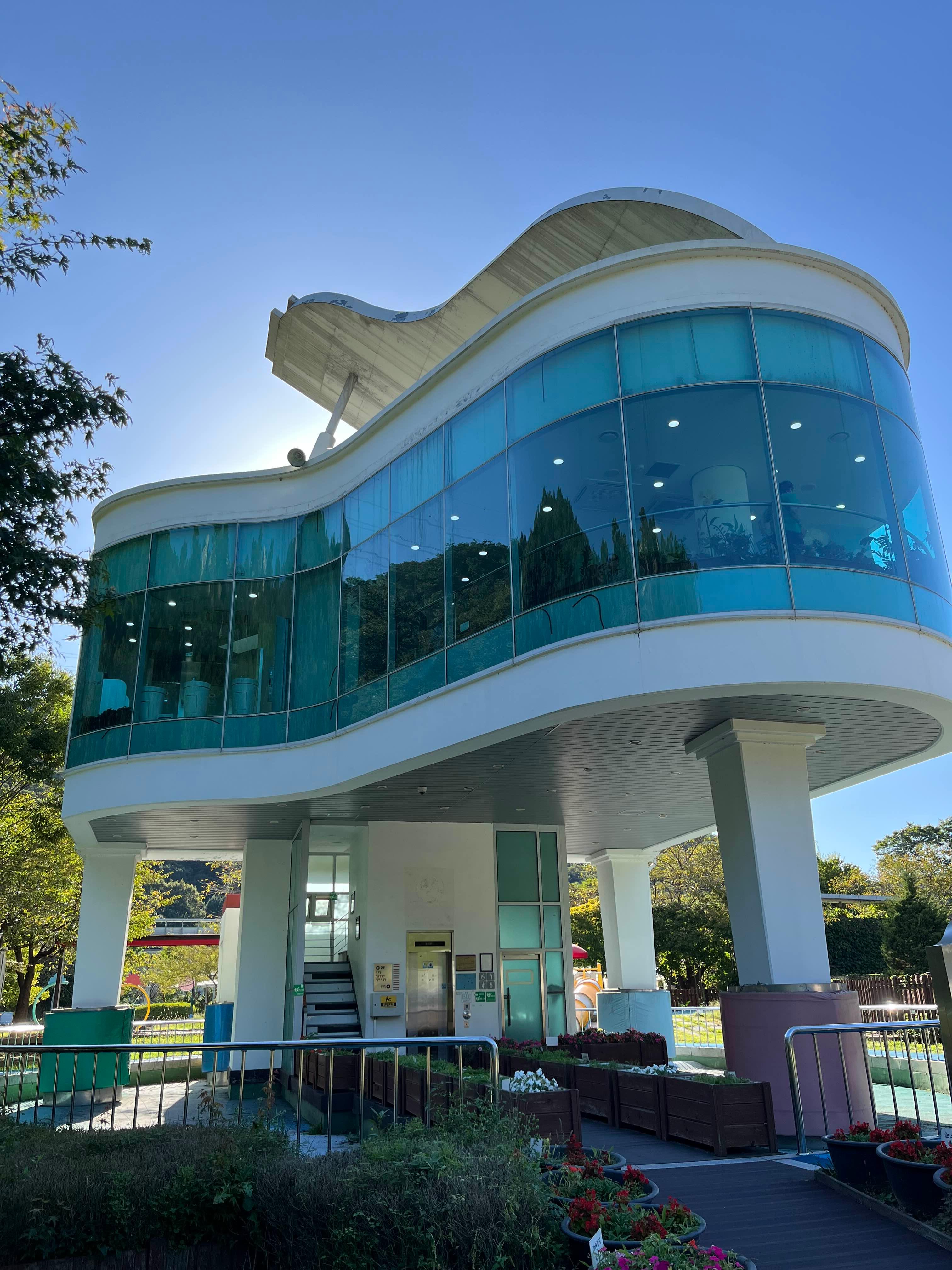 피아노 폭포 맞은편에는 피아노 모양의 건물인 피아노 화장실이 있어요. 이 화장실은 2008년 '아름다운 화장실' 대상을 수상했다고 하네요. 내부에는 수유실과 휴게실이 갖춰져 있고, 곳곳에 화분들이 놓여 있었어요.