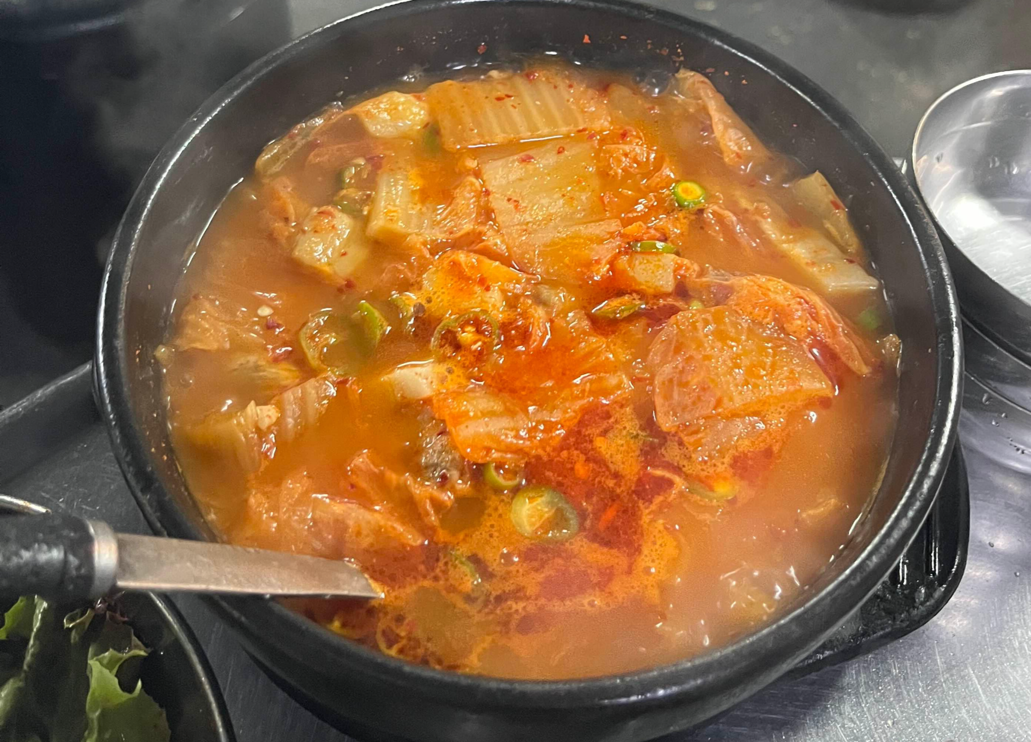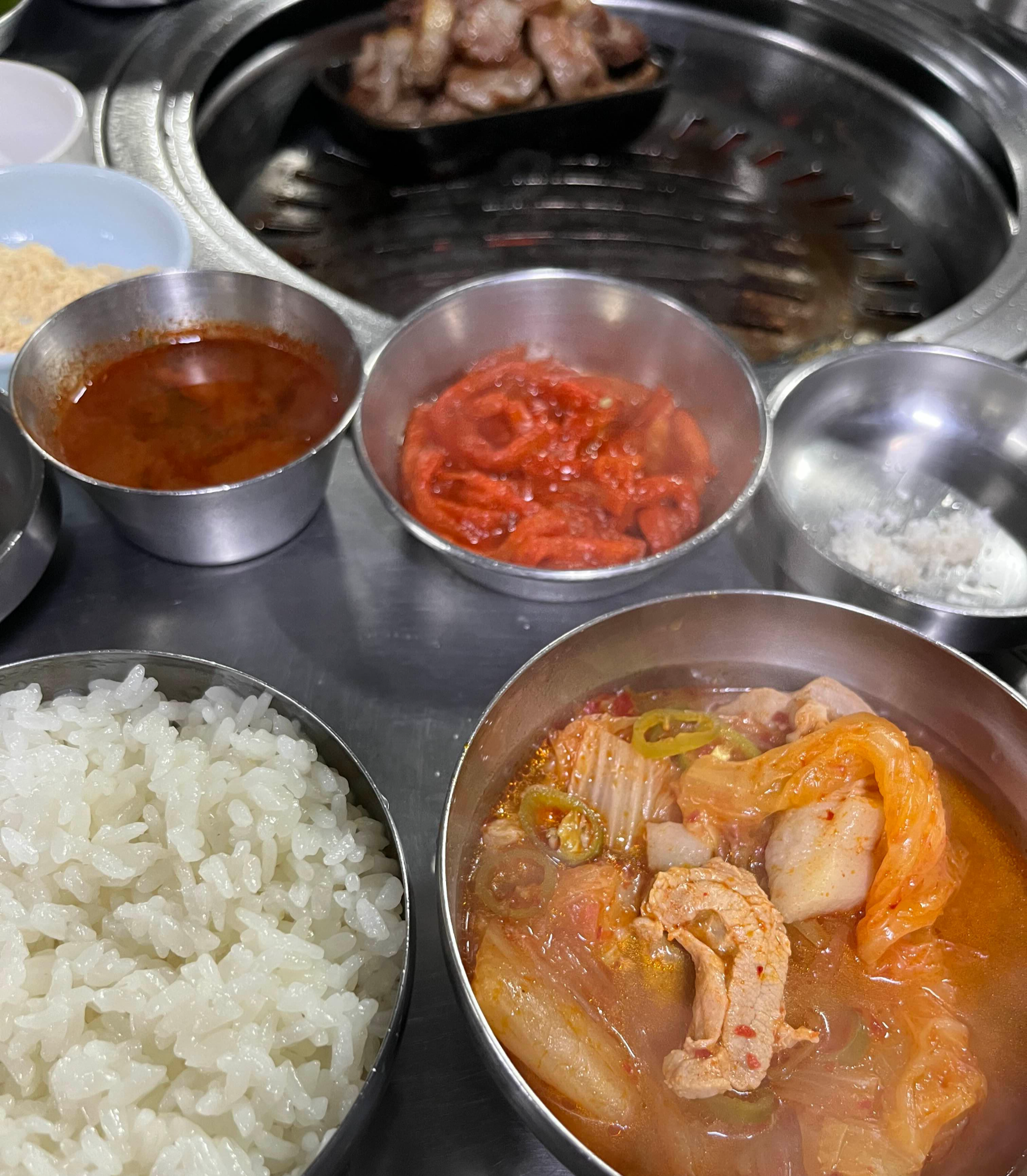 특삼겹너덜이에 대한 아쉬움을 뒤로한 채, 저희는 일삼꼬들이를 주문했습니다. 일삼꼬들 역시 특삼겹너덜이처럼 한정 판매되는 메뉴입니다. 그리고 생고기 김치찌개도 빼놓을 수 없죠. 고기 맛도 좋지만, 이 생고기 김치찌개 하나면 밥 한 그릇은 뚝딱 할 수 있답니다.