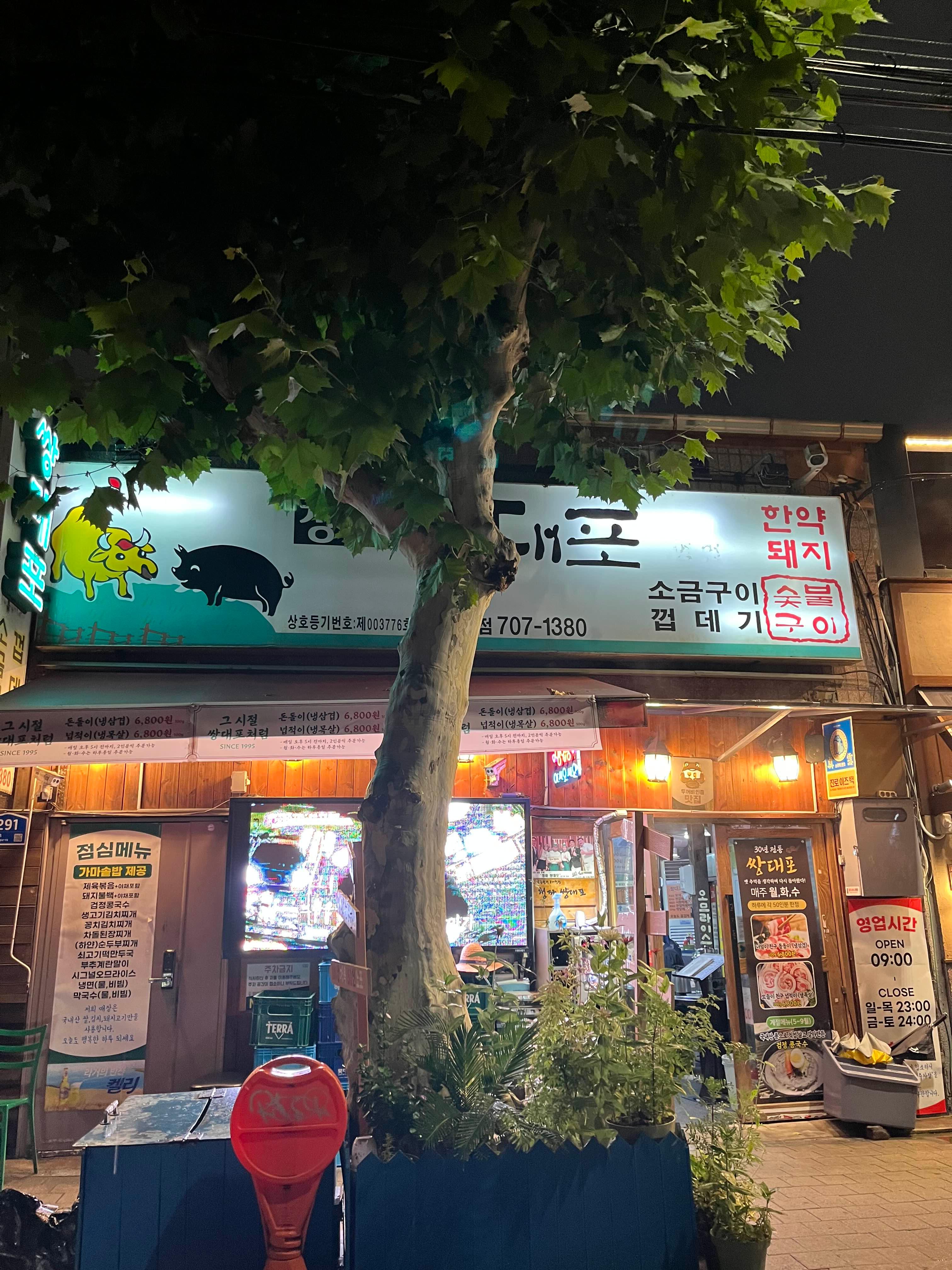 얼마 전 주말에 남편과 함께 용산에서 영화를 보고는 저녁을 먹기 위해 청파동 쌍대포소금구이 본점에 가게 되었는데요. 이곳에 도착한 것이 밤 9시 20분이 넘은 시각이었어요. 대기할 줄 알았는데, 다행히 한 자리가 비어 바로 들어갈 수 있었습니다.