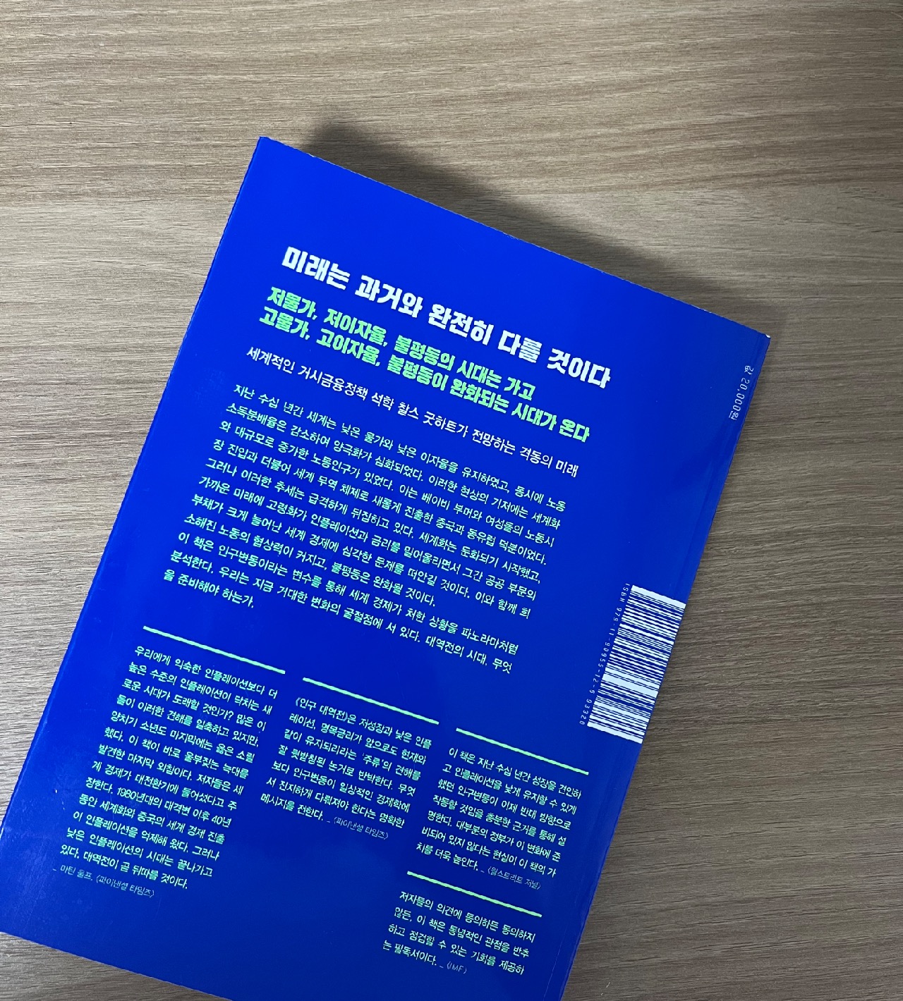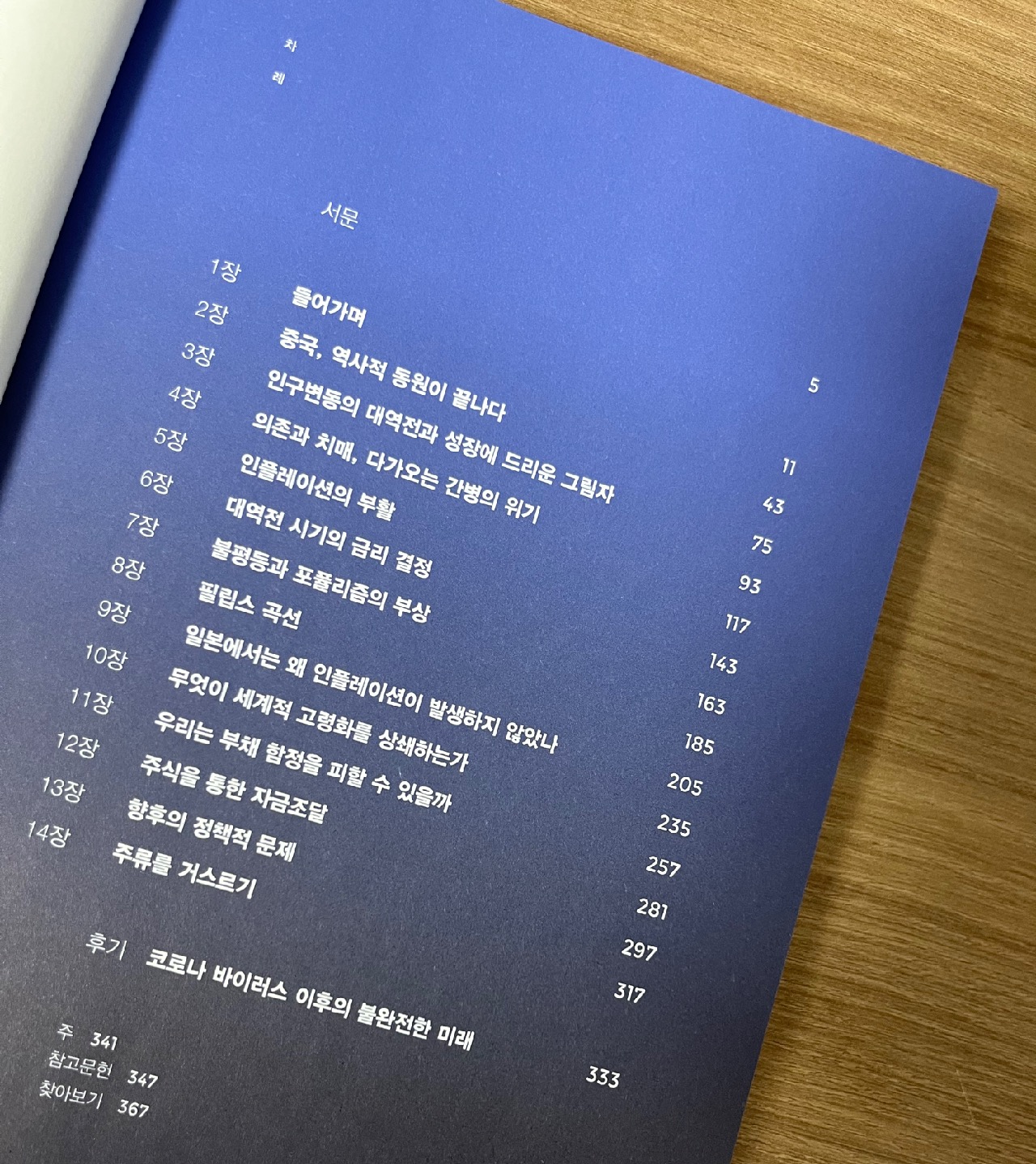 인구변동과 세계화가 금융과 실물경제의 장기추세에 미치는 영향에 초점을 맞추고 있는 이 책은 지금까지는 이러한 두 변수가 디플레이션 경향에 영향을 주었지만, 앞으로 30년 정도는 두 추세가 역전하며 세계 주요 경제에 다시 인플레이션 압력을 가할 수 있다는 것을 강조한다. 책을 읽으면서 조금 아쉽게 느껴진 것은, 이 책의 원고가 대부분 2019년에 쓰였다는 것. 좀 더 최근의 원고였으면 한층 좋았을 거라는 생각이 들었다.