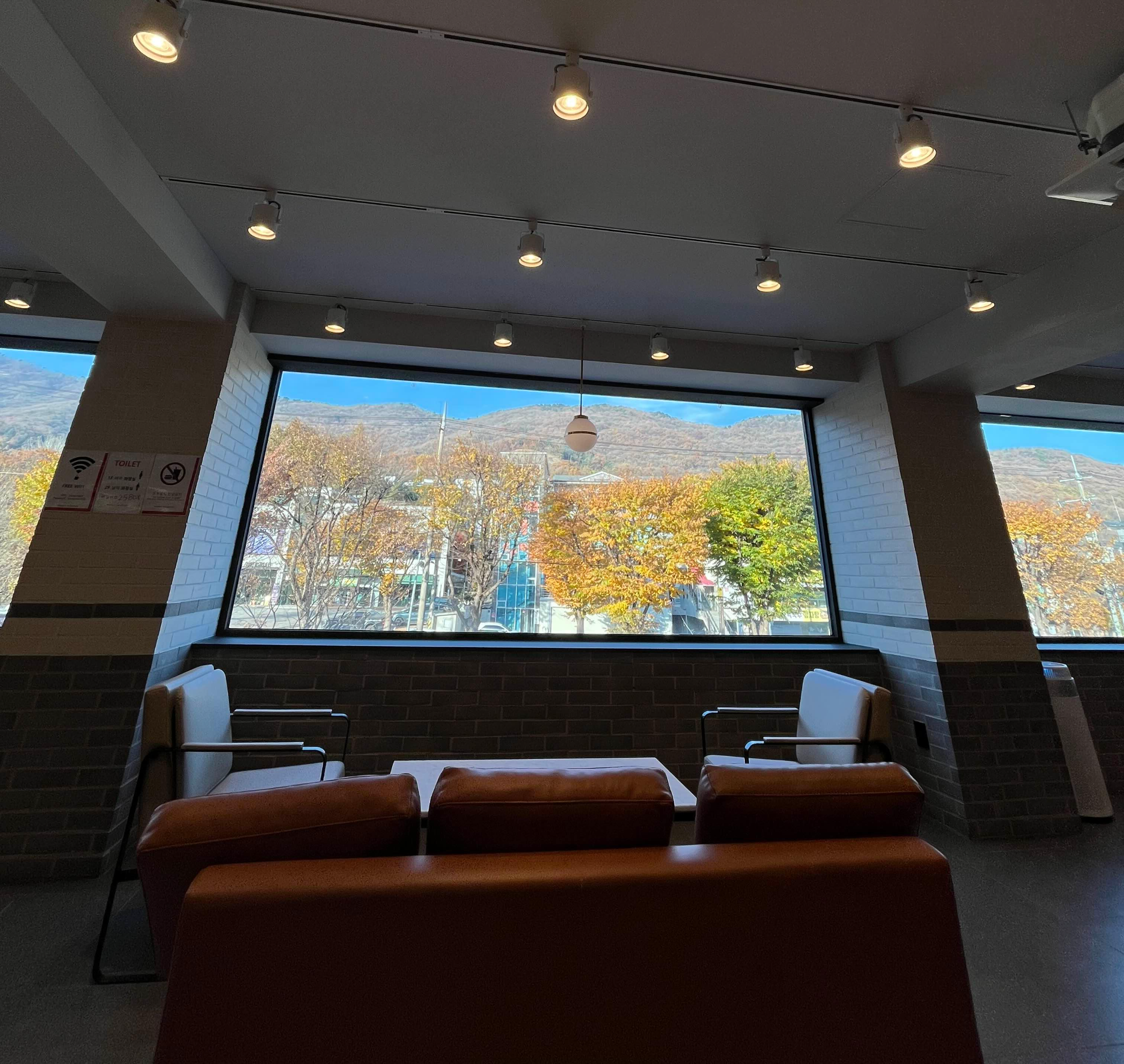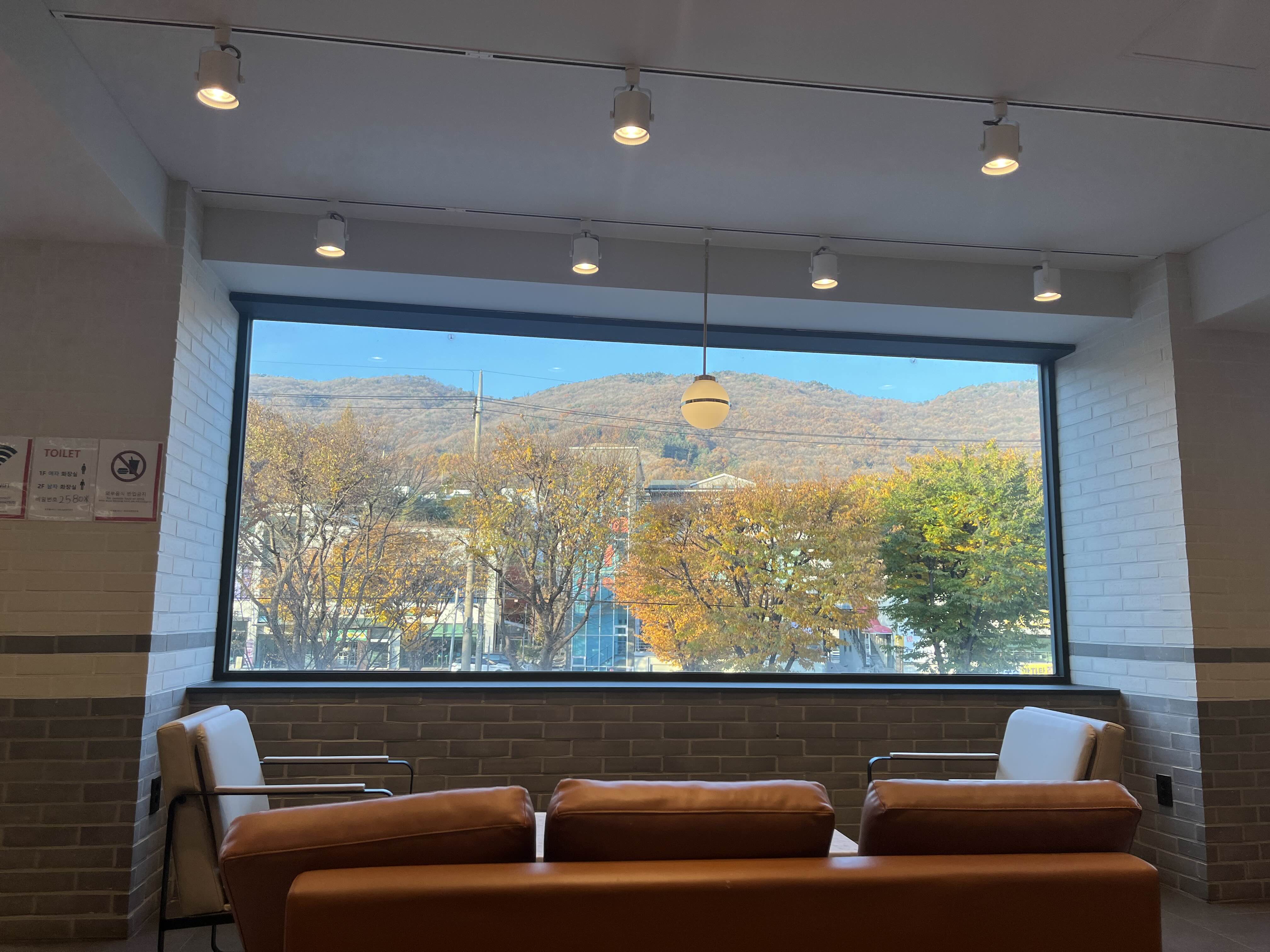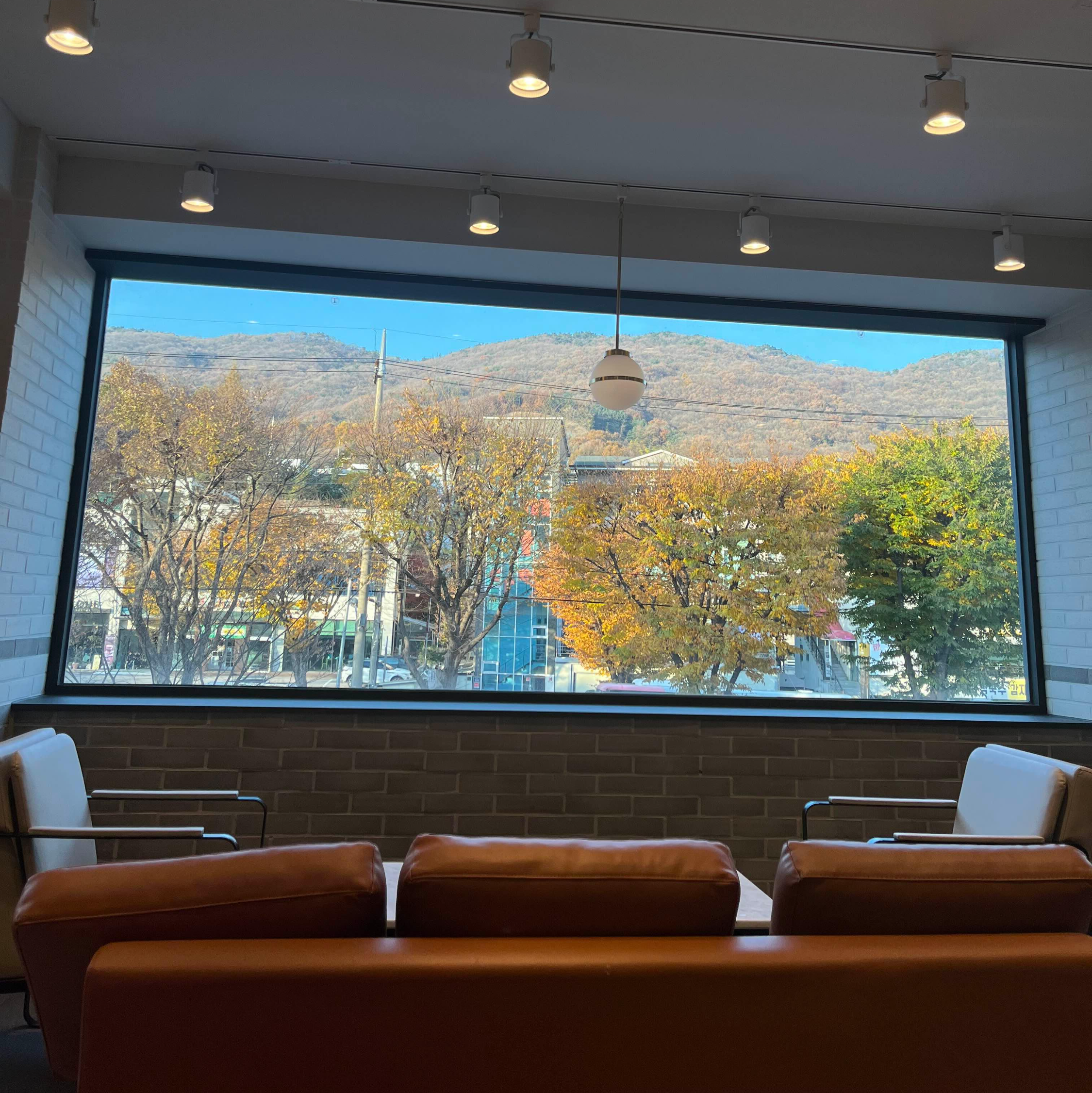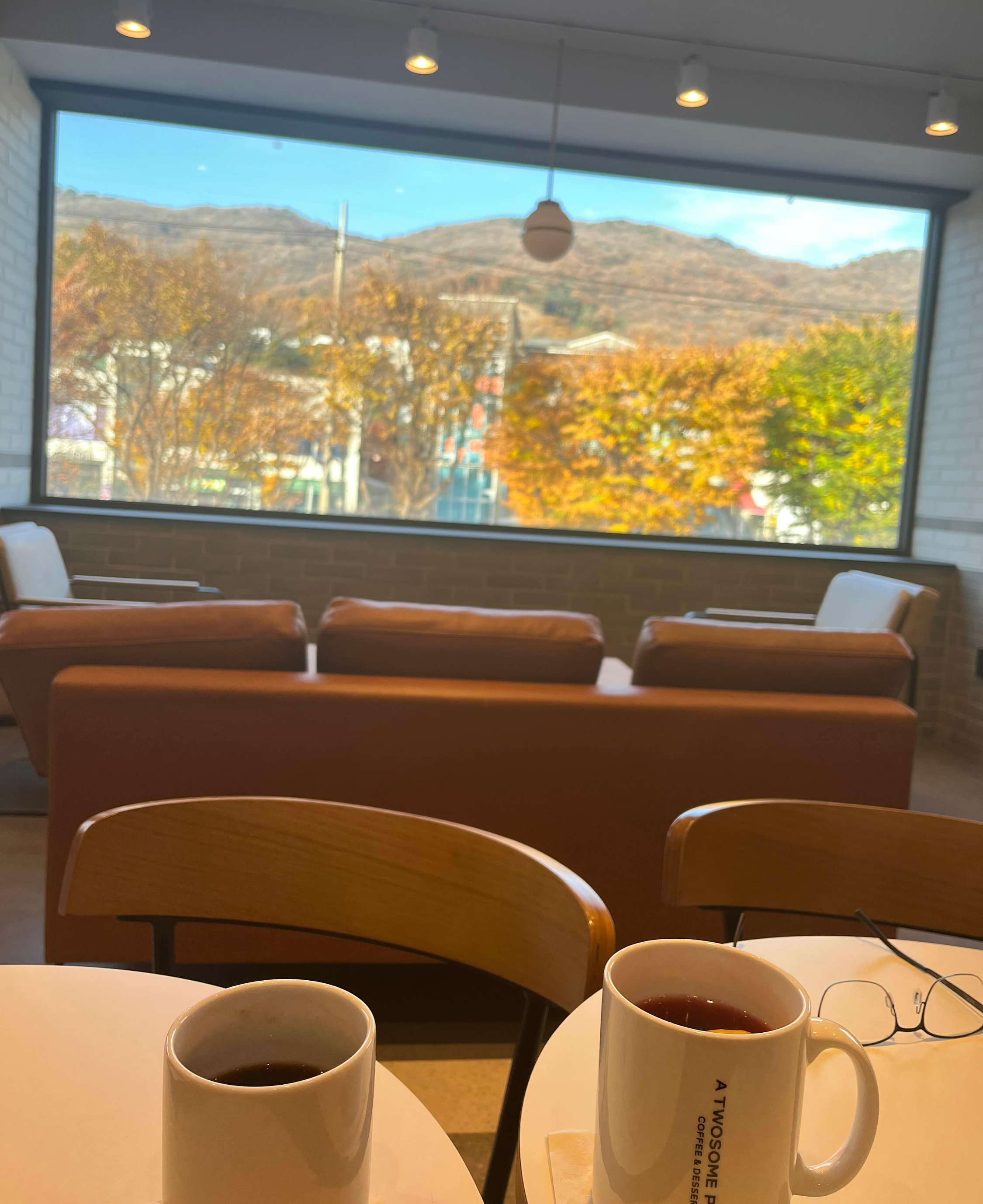짜잔~~~ 그 이유는 바로 이것이랍니다. 저 멀리 청계산이 창밖으로 보이는데요. 이 풍광은 이곳 투썸플레이스 서판교 운중타운점의 2층에서 만날 수 있는 아름다움, 그 자체이거든요.
