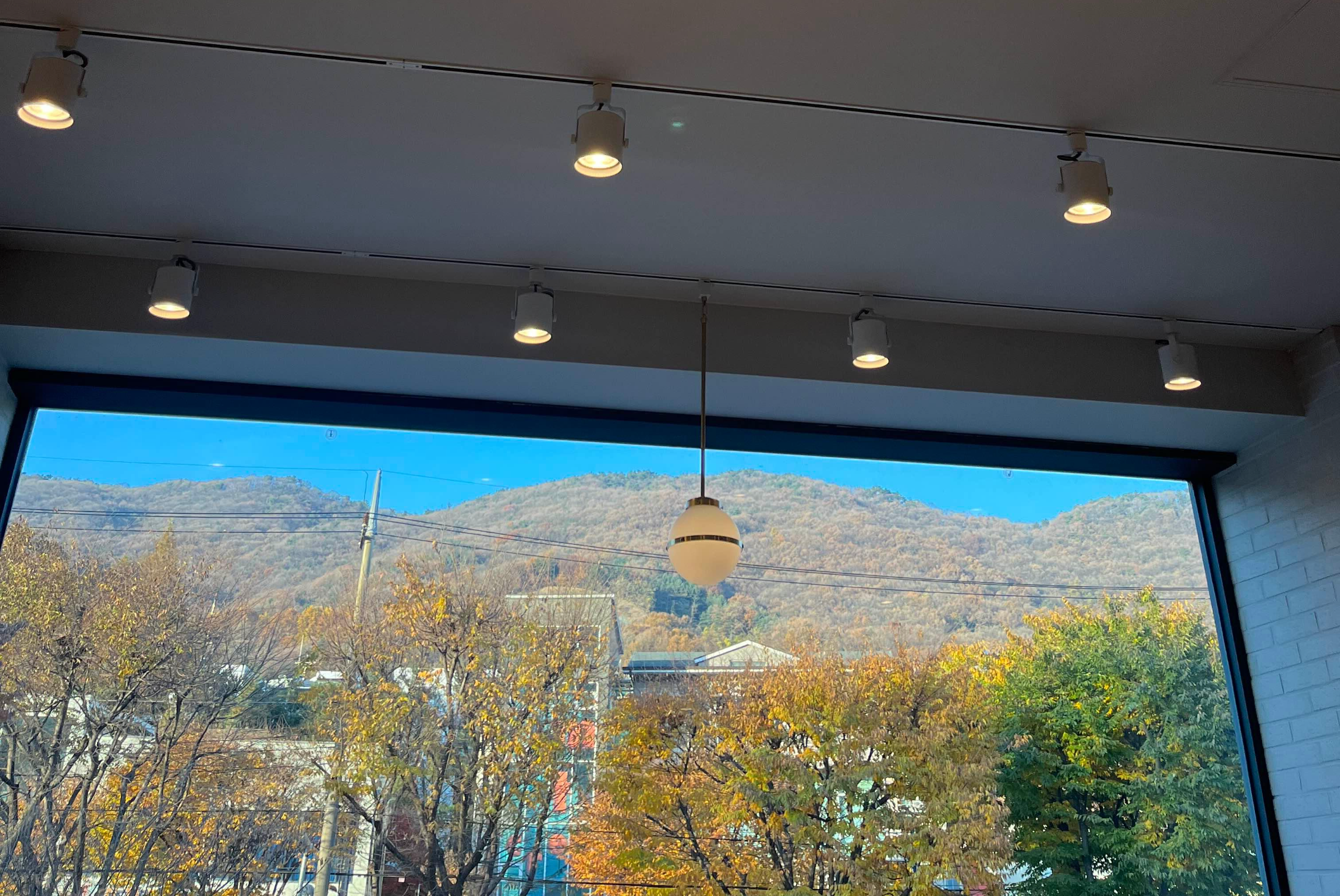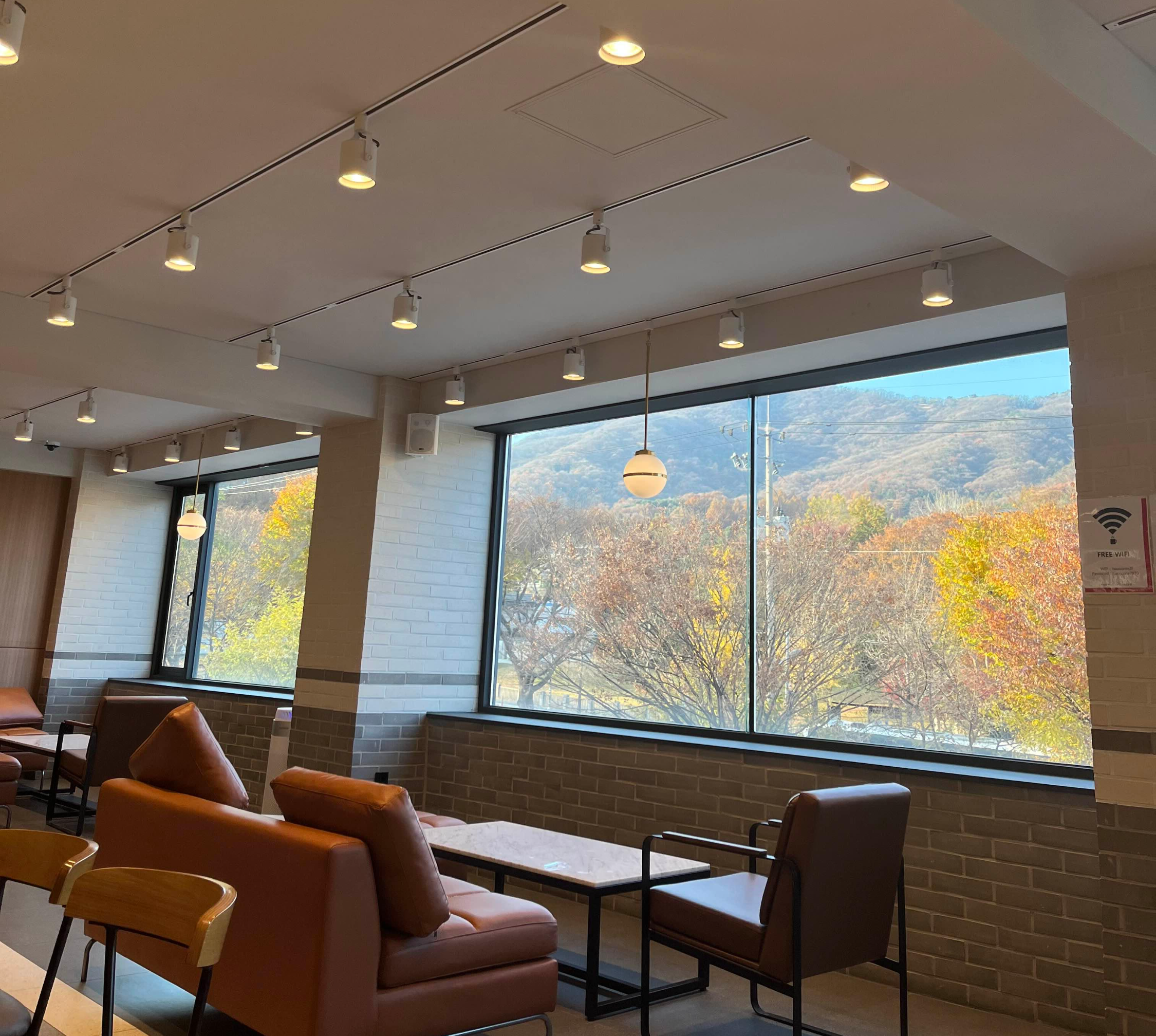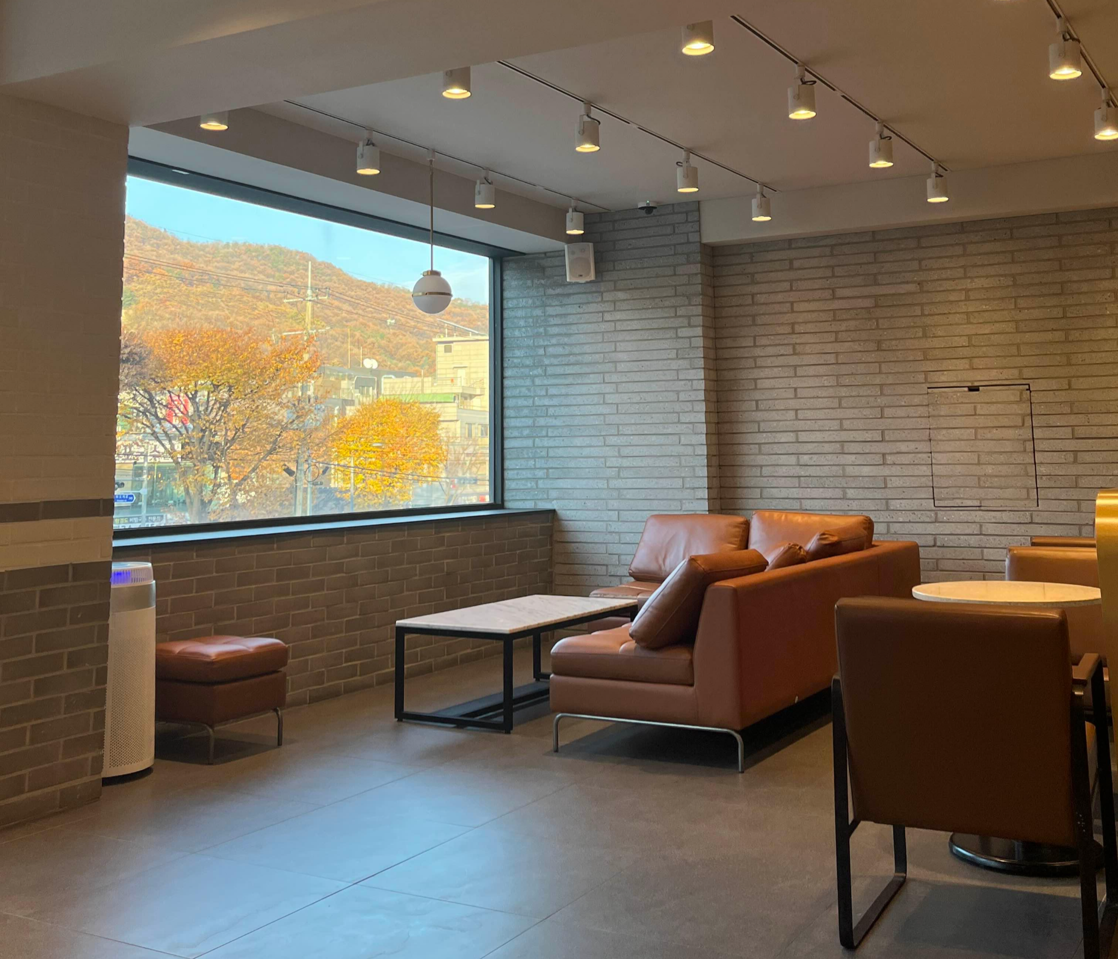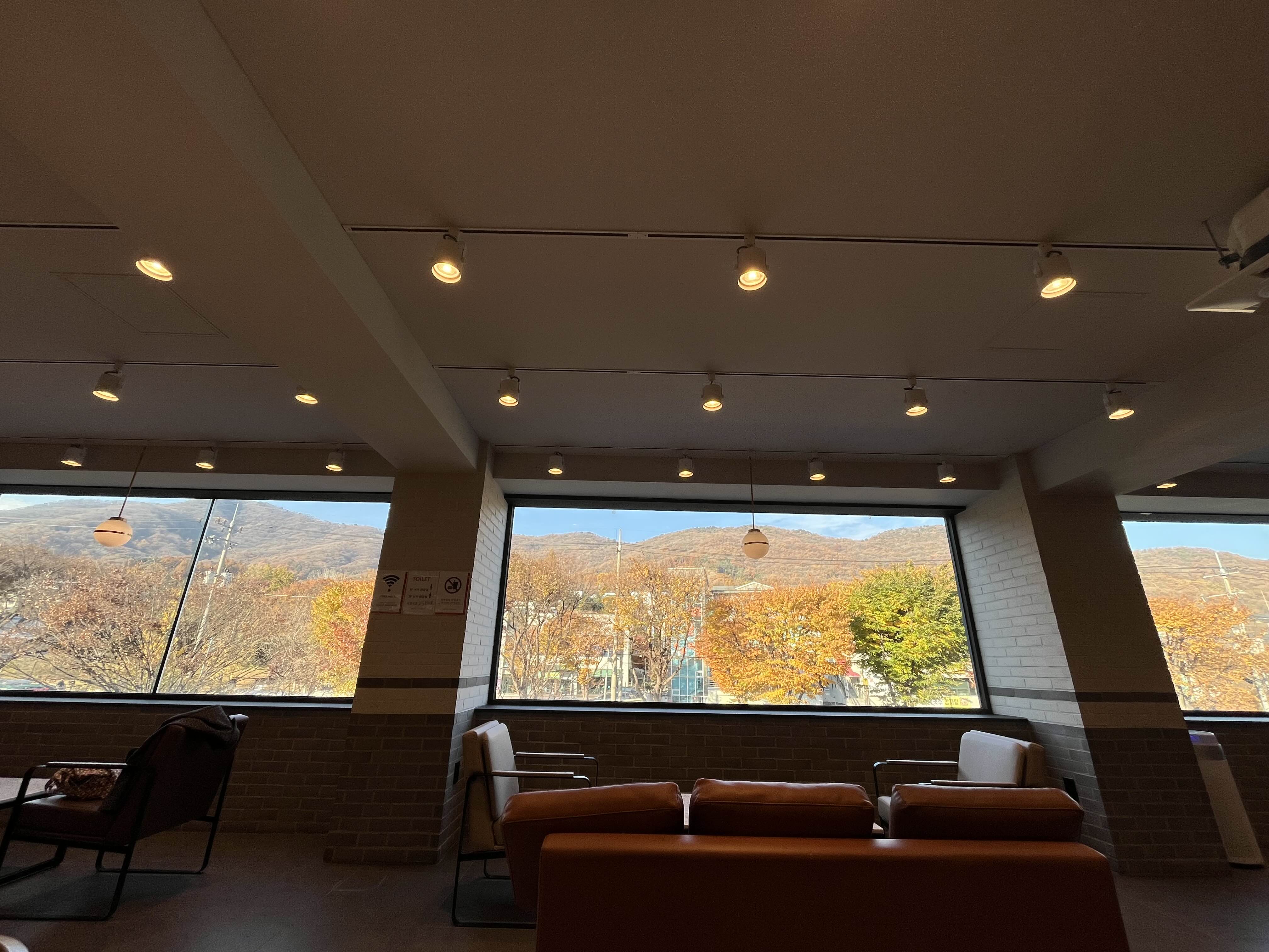 짜잔~~~ 그 이유는 바로 이것이랍니다. 저 멀리 청계산이 창밖으로 보이는데요. 이 풍광은 이곳 투썸플레이스 서판교 운중타운점의 2층에서 만날 수 있는 아름다움, 그 자체이거든요.