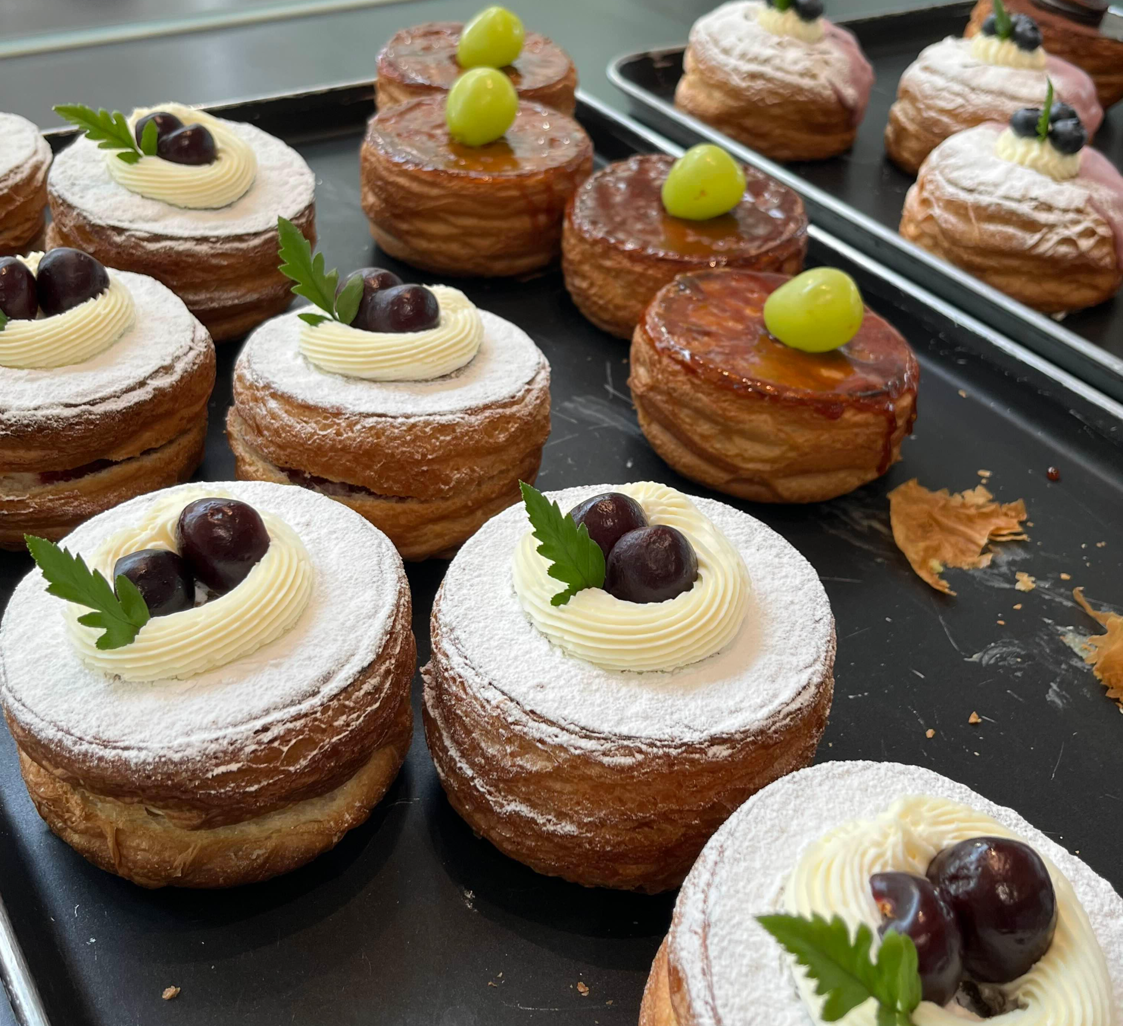 카페 이리정미소는 프랑스 밀가루와 프랑스 엘르엔비르 버터를 사용하여 반죽을 16시간 이상 저온숙성해서 만든 다양한 페스트리류와 크로넛을 맛볼 수 있는데요. 로스터실 맞은편에 있는 베이킹실에서 직접 만들고 있답니다.