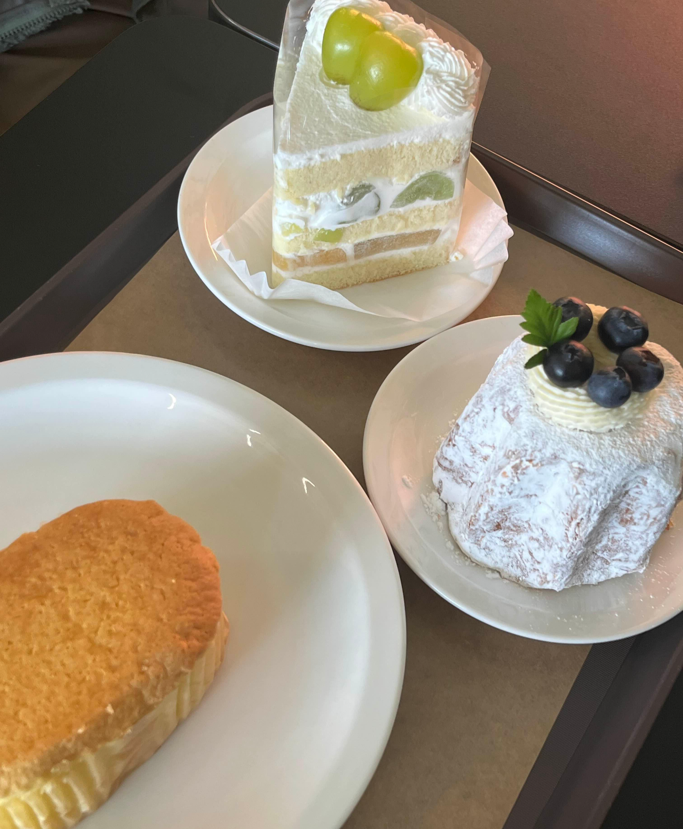 아빠는 쌍화차를, 그리고 저희들은 크림라떼와 딸기라떼, 아이스 아메리카노, 카페라떼, 아이스카페라떼 등의 음료를 주문했고요. 사르르록 팡도르와 딸기생크림조각케이크, 카스텔라도 함께 골랐습니다.