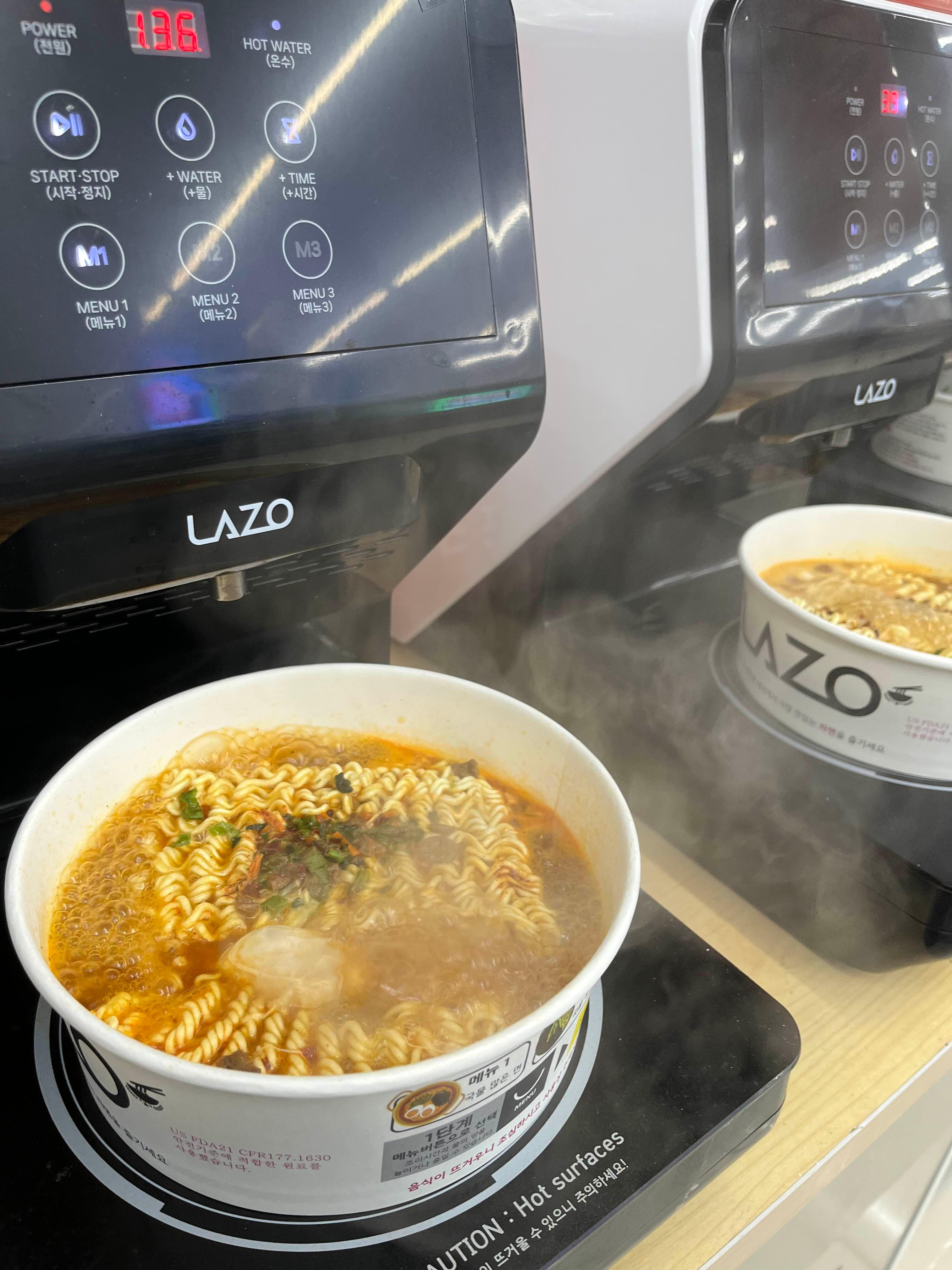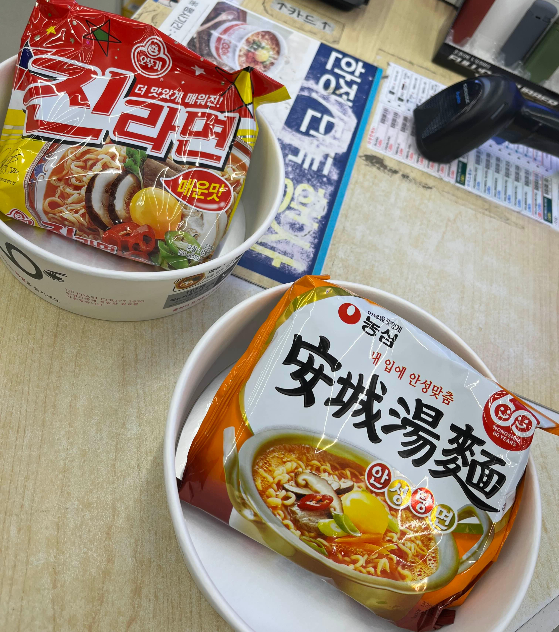 남편은 진라면 매운맛으로, 저는 안성탕면을 골랐습니다. 한강라면 구매 시 계란은 서비스라고, 사장님께서 계란을 톡 넣어주시네요.