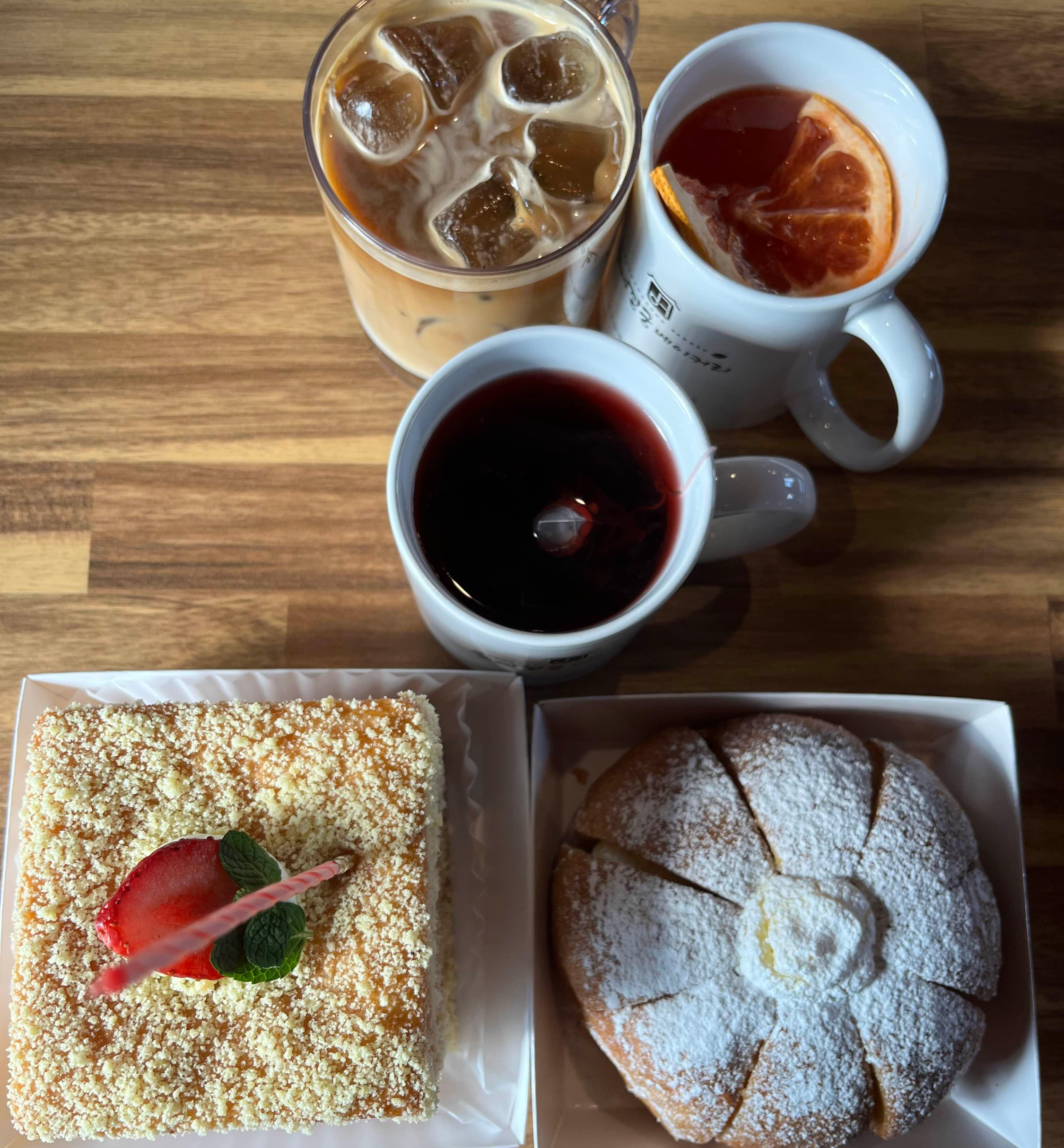 저희는 지인에게 축하할 일이 있어 초 하나도 꽂았어요. 음료는 자몽, 히비스커스블렌드, 그리고 아이스 바닐라라떼를 주문했습니다.