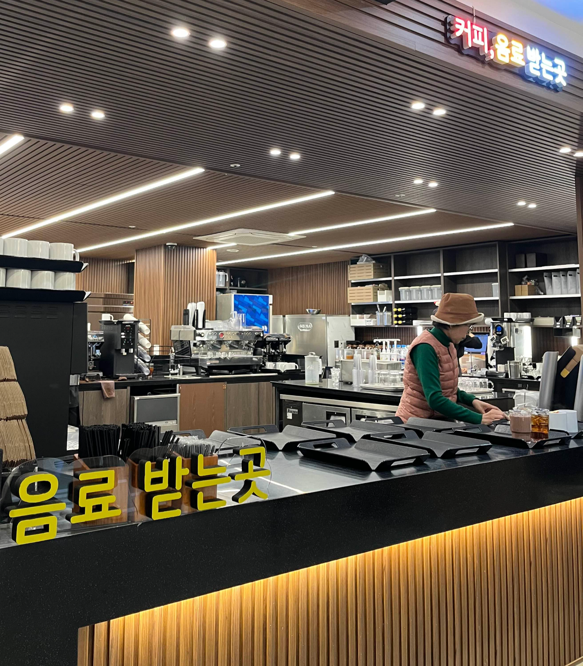 2층에는 야외 산책로로 나가는 길도 바로 연결되어 있어요. 날씨가 좋은 날에는 야외 테이블에 앉는 것도 참 좋을 것 같다는 생각이 들었습니다. 저희가 간 날은 날씨가 많이 추워서 3층 실내로 자리를 잡았습니다.