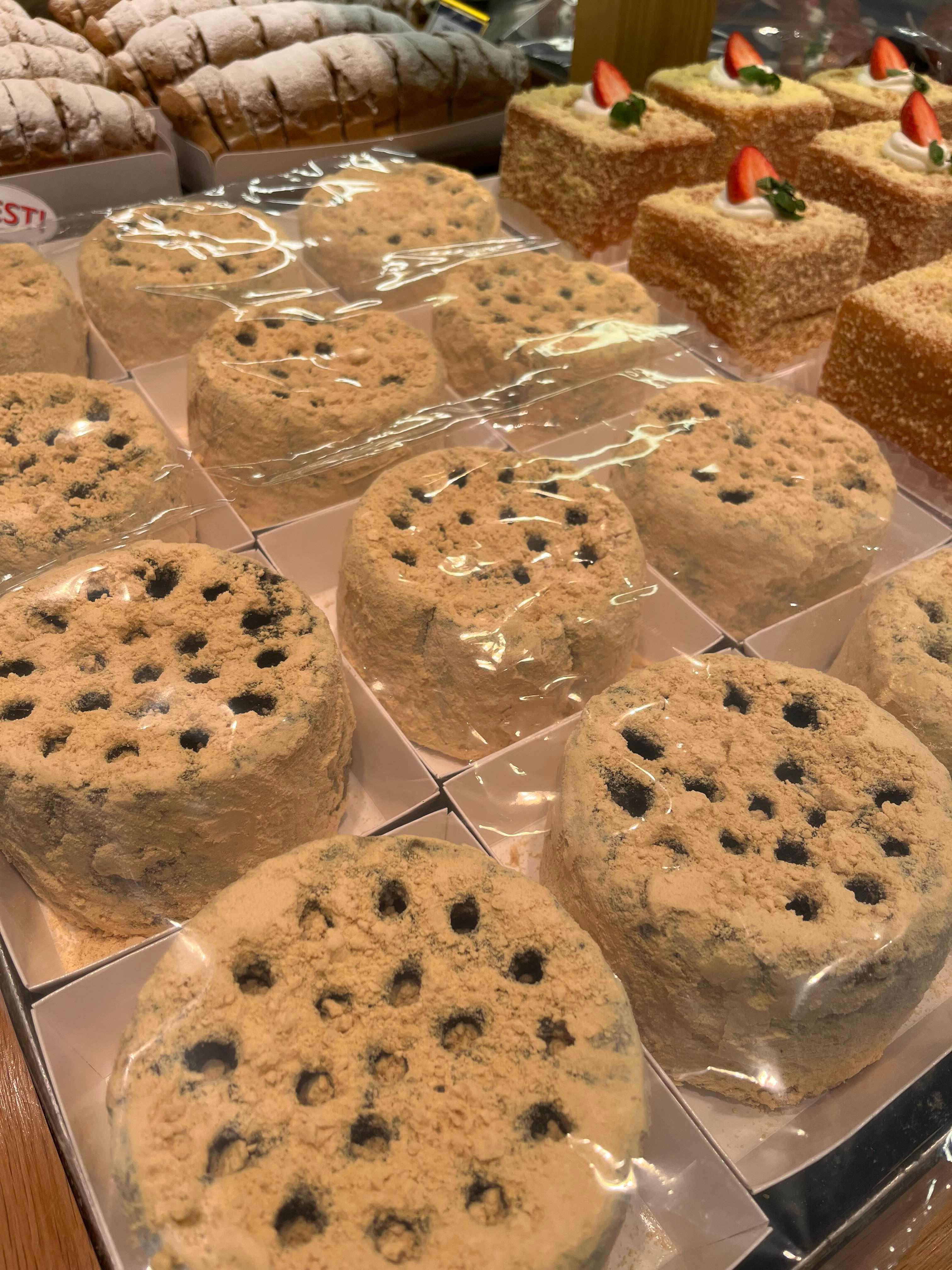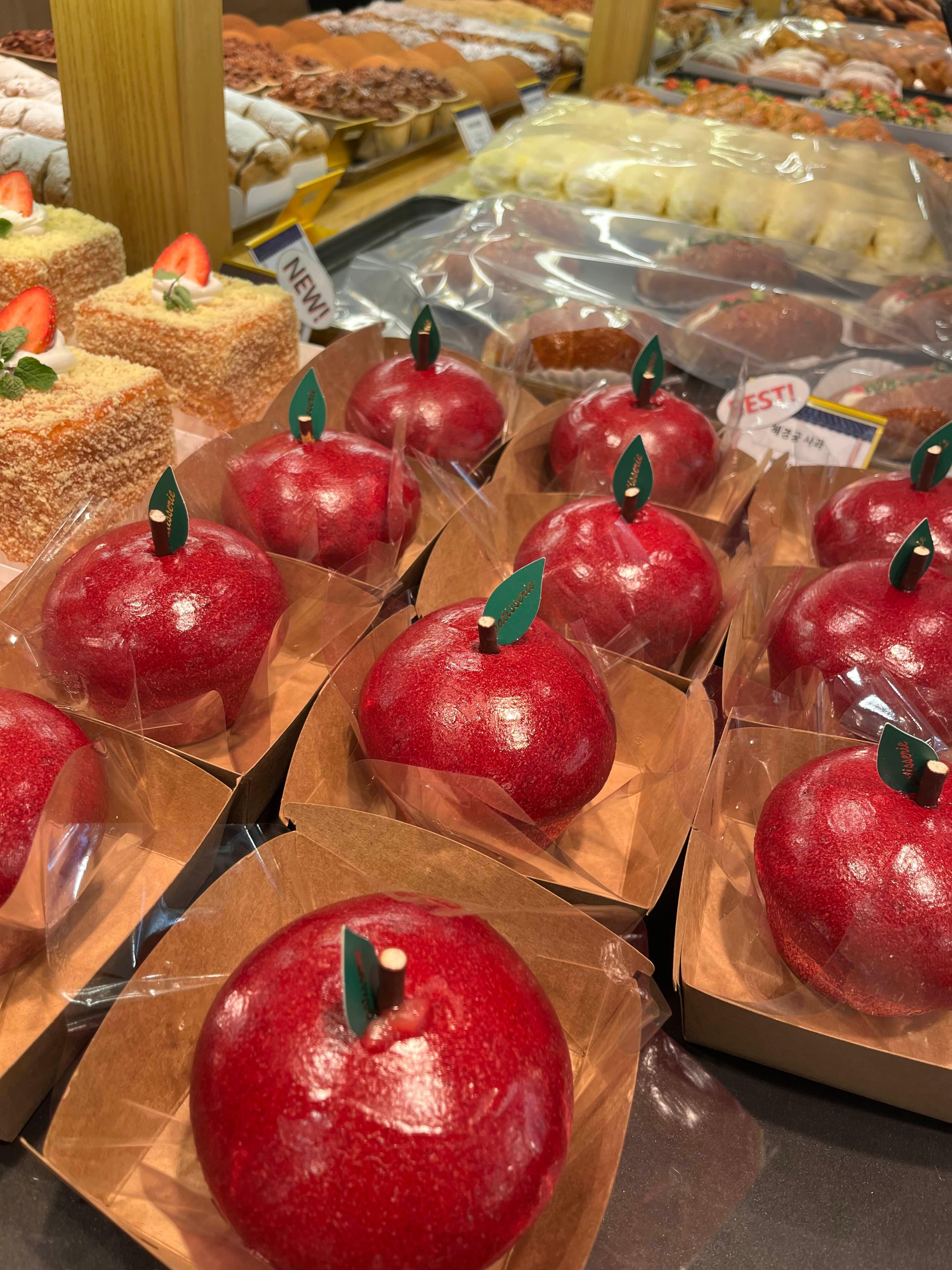 베이커리의 비주얼도 특이하니 예쁜 빵들이 많더라고요. 잘 익은 사과 모양도 있고, 연탄재 모양의 베이커리도 눈에 들어옵니다.