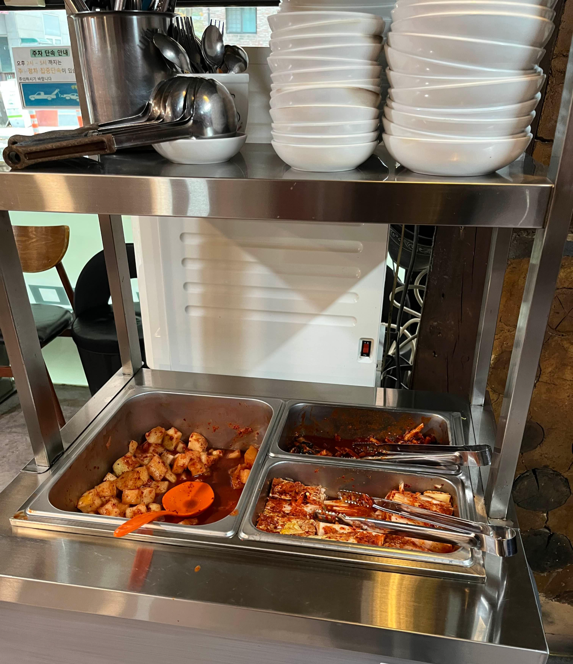 배추김치와 깍두기, 무말랭이무침이 밑반찬으로 나오는데요. 모두 맛났습니다. 부족한 반찬은 셀프바에서 직접 갖다 드실 수 있으세요.