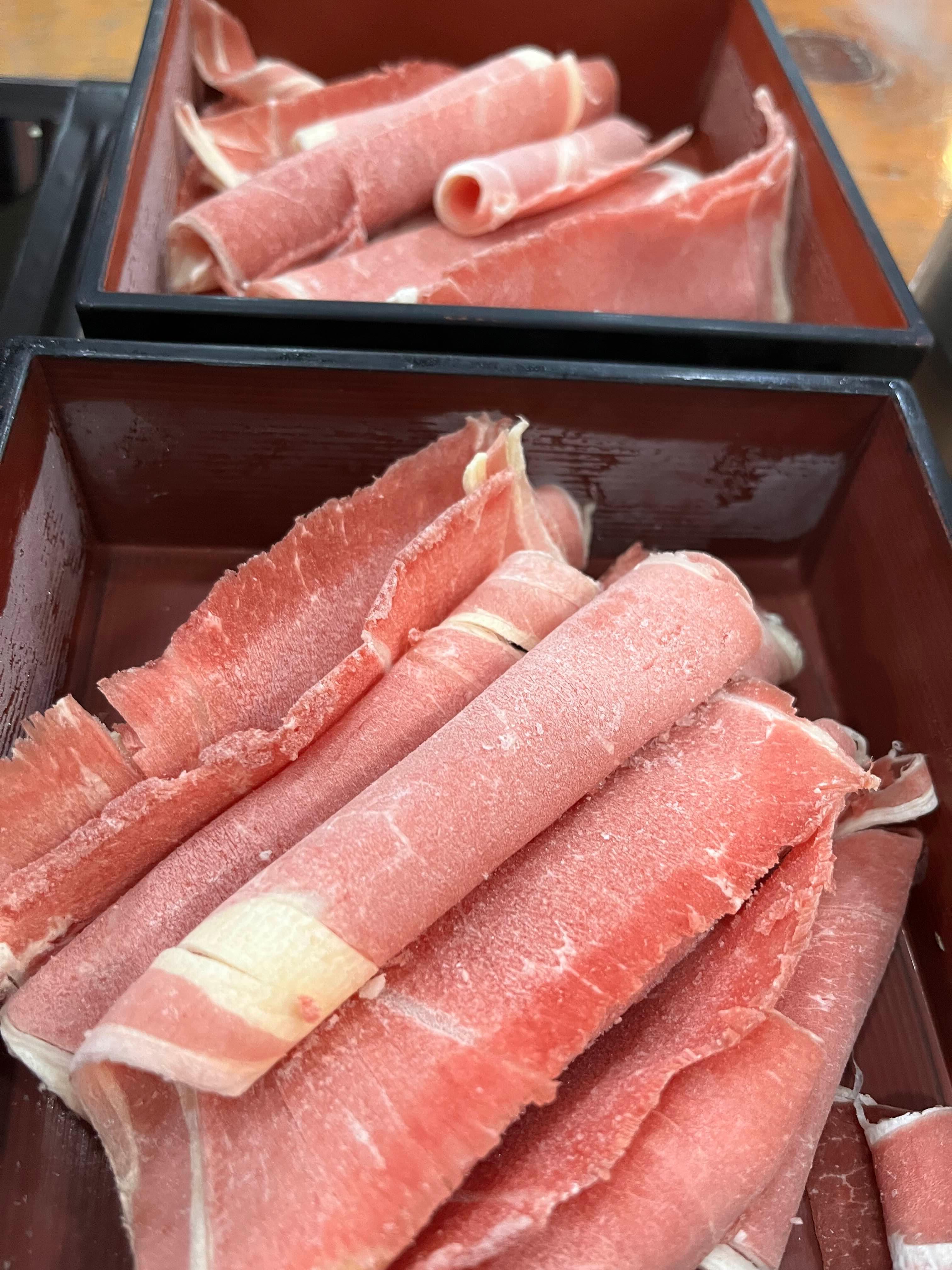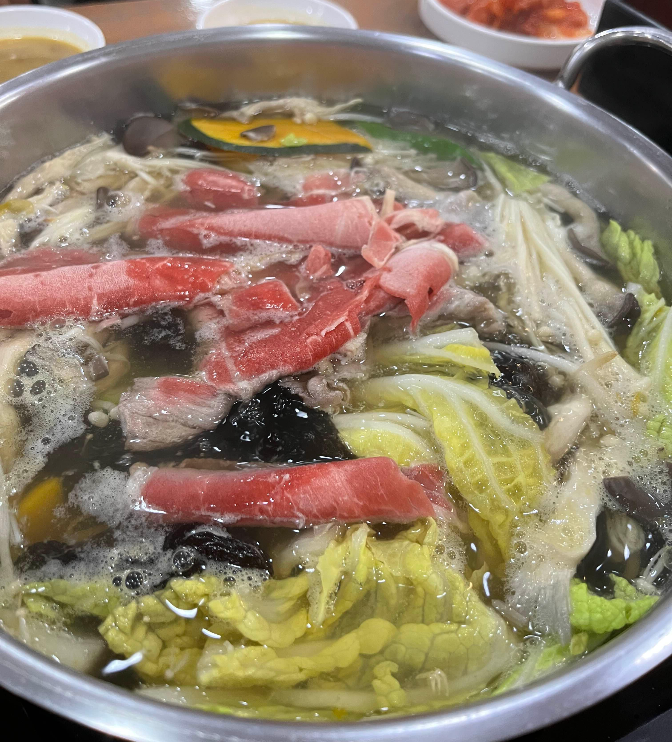 저희는 소고기 샤브샤브 2인분을 주문했습니다. 육수와 고기가 재빠르게 나왔어요.