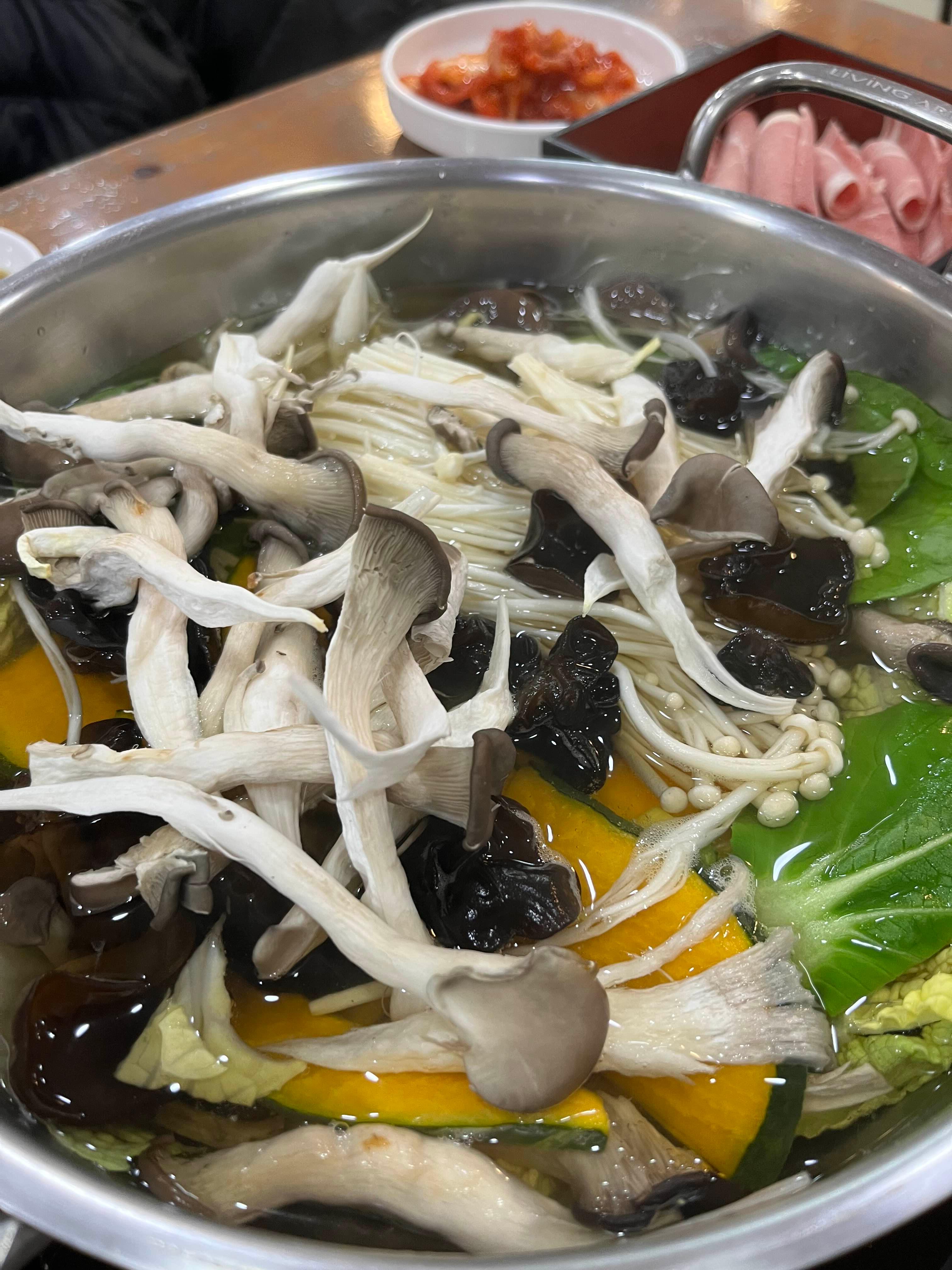 고기와 야채를 함께 먹을 수 있는 샤브버섯칼국수, 과천 서울대공원 맛집 봉덕칼국수