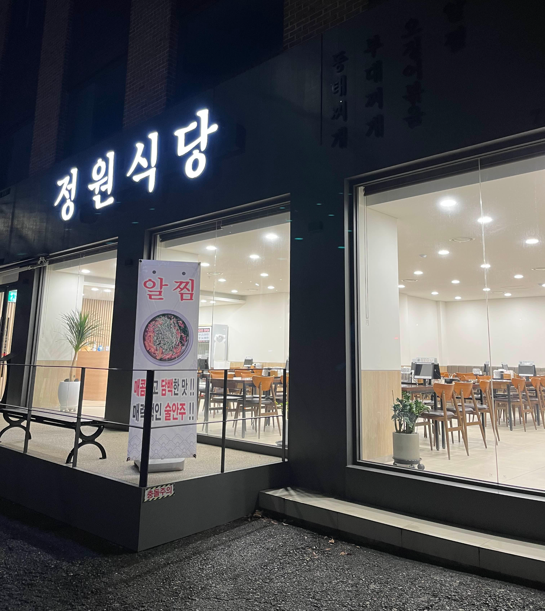 정원식당은 제2판교테크노밸리 앞에 위치해 있습니다. 이 근처를 지나시는 길이라면 한번 들러보셔도 좋으실 것 같아요. 매콤하고 담백한 맛의 알찜 맛도 궁금해지네요. 사이드 메뉴로 내장고니와 동태알, 동태전도 있답니다. 늦은 시간에 먹은 저녁이었지만, 맛있게 잘 먹었습니다.