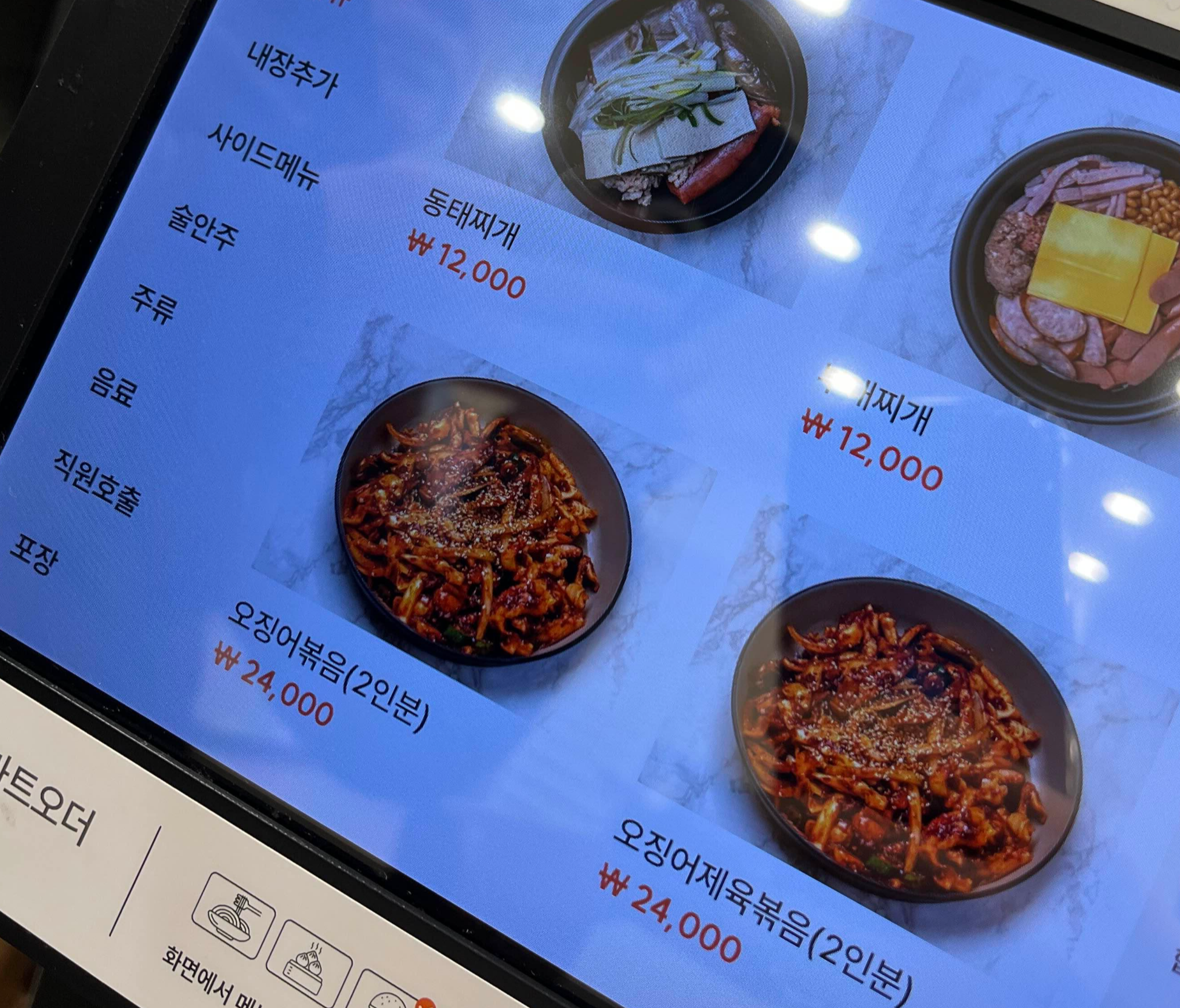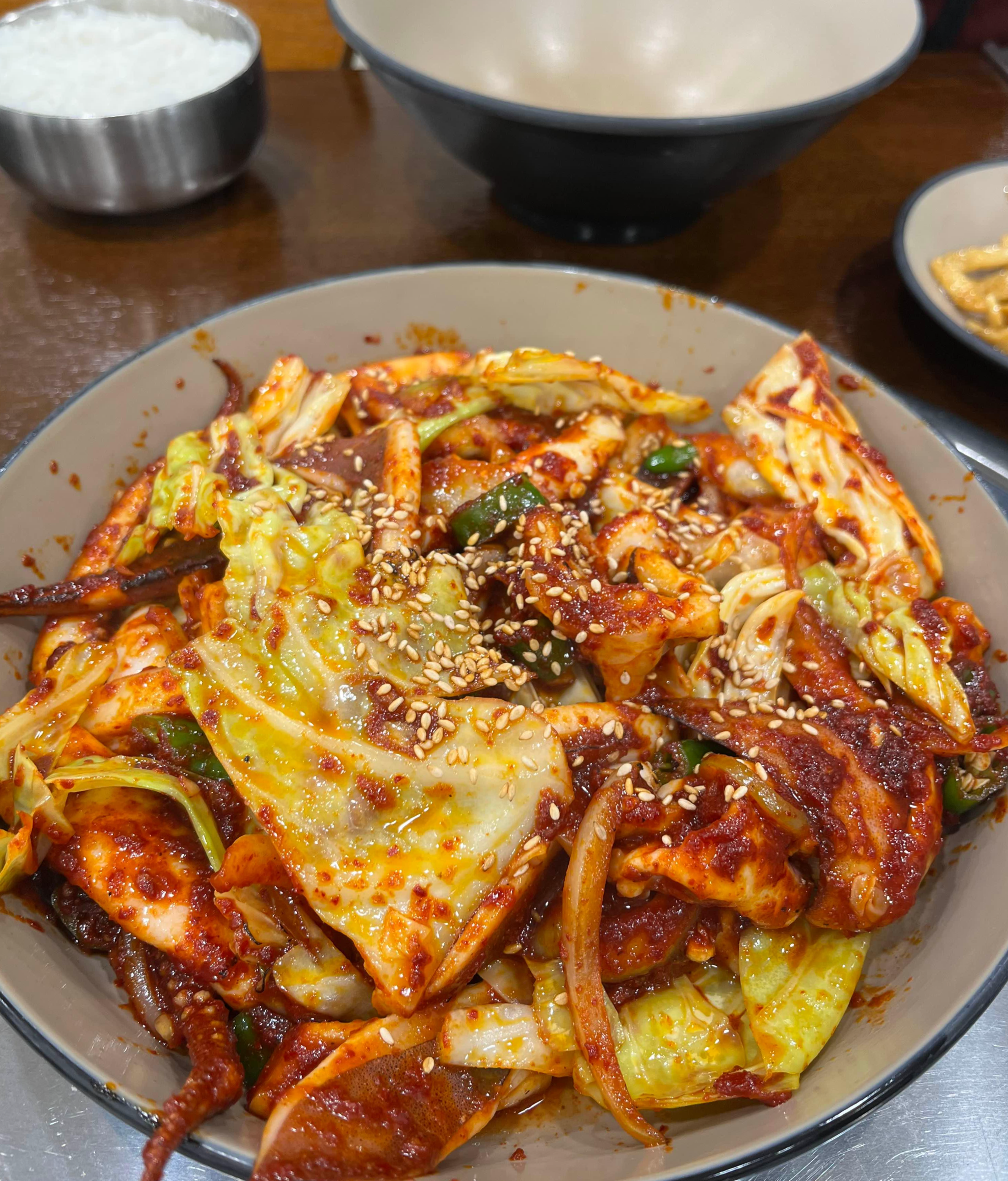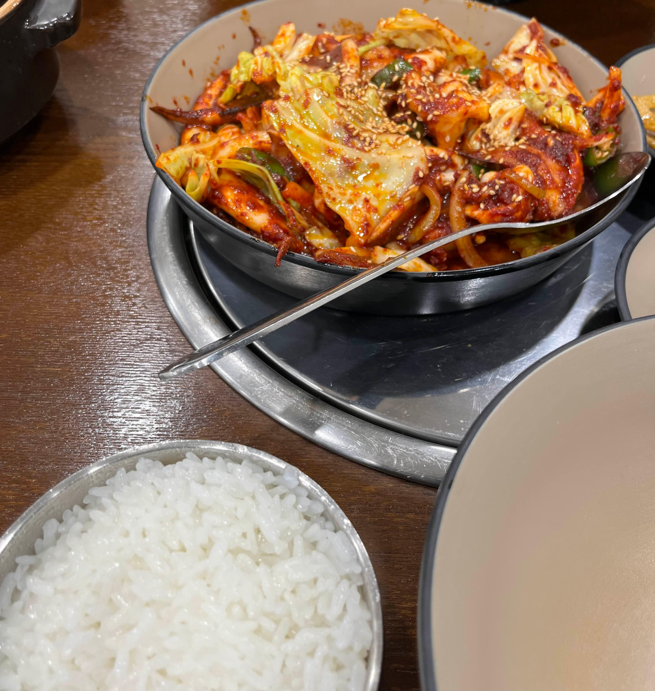 남편과 저는 오징어제육볶음을 먹을까, 그냥 오징어볶음을 먹을까 잠시 망설였는데요. 사장님께서 다가오시더니 오징어제육볶음은 재료가 소진되었다고 말씀해 주셔서 미련 없이 오징어볶음을 선택했습니다.