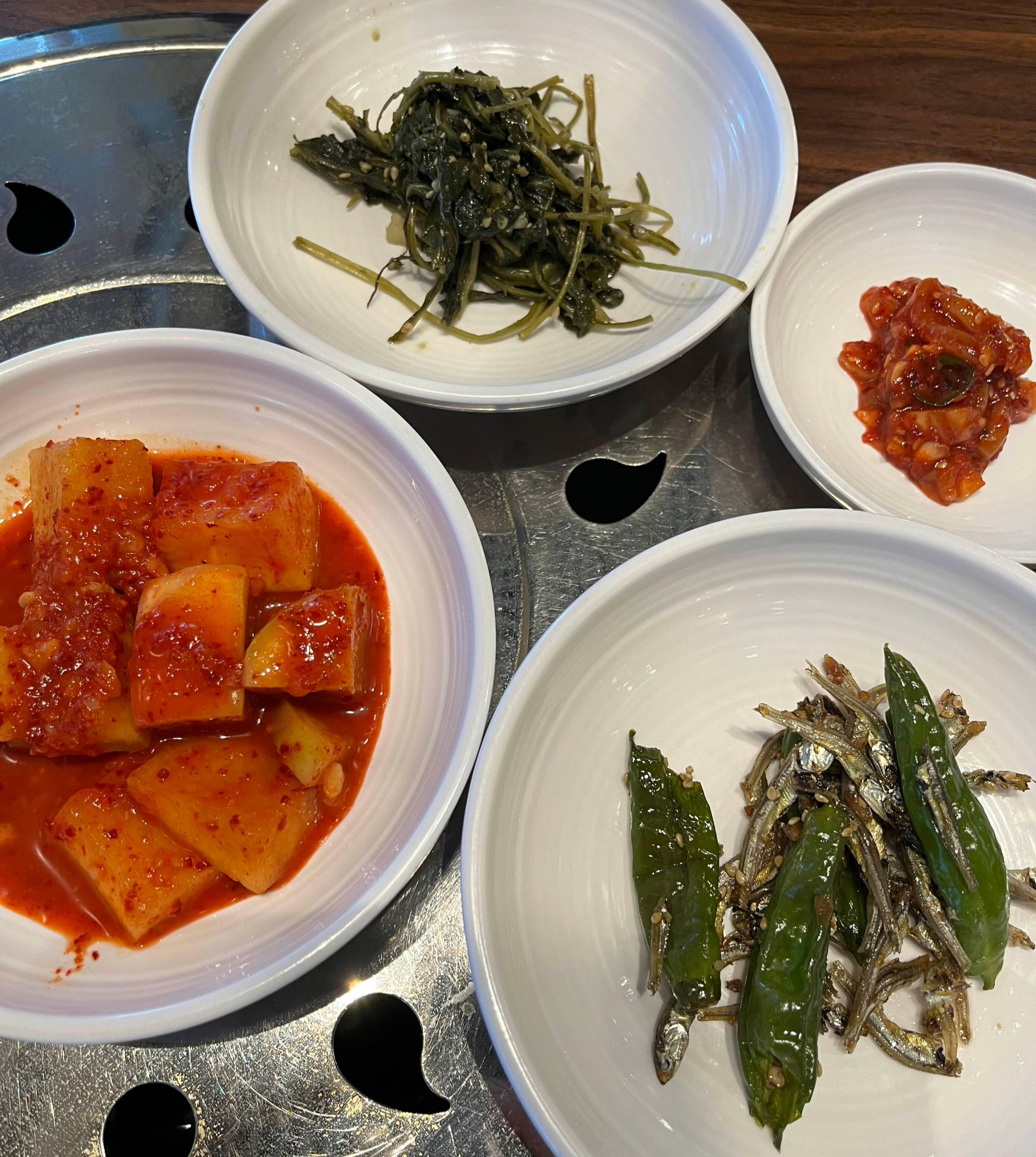 기본 반찬으로는 깍두기와 오징어젓갈, 멸치볶음, 취나물이 나옵니다. 반찬의 가짓수는 많지 않지만 정갈하니 맛있었습니다.