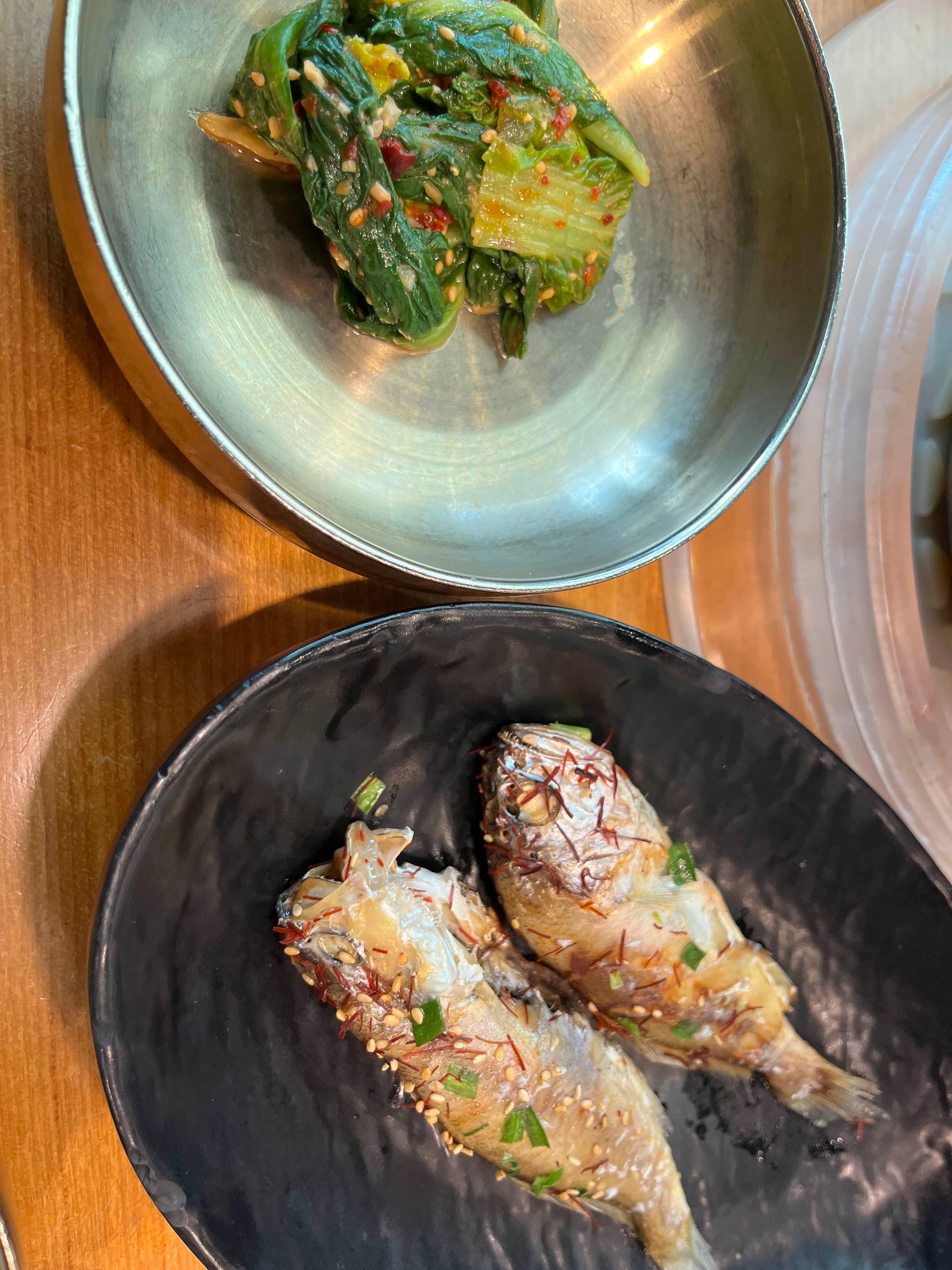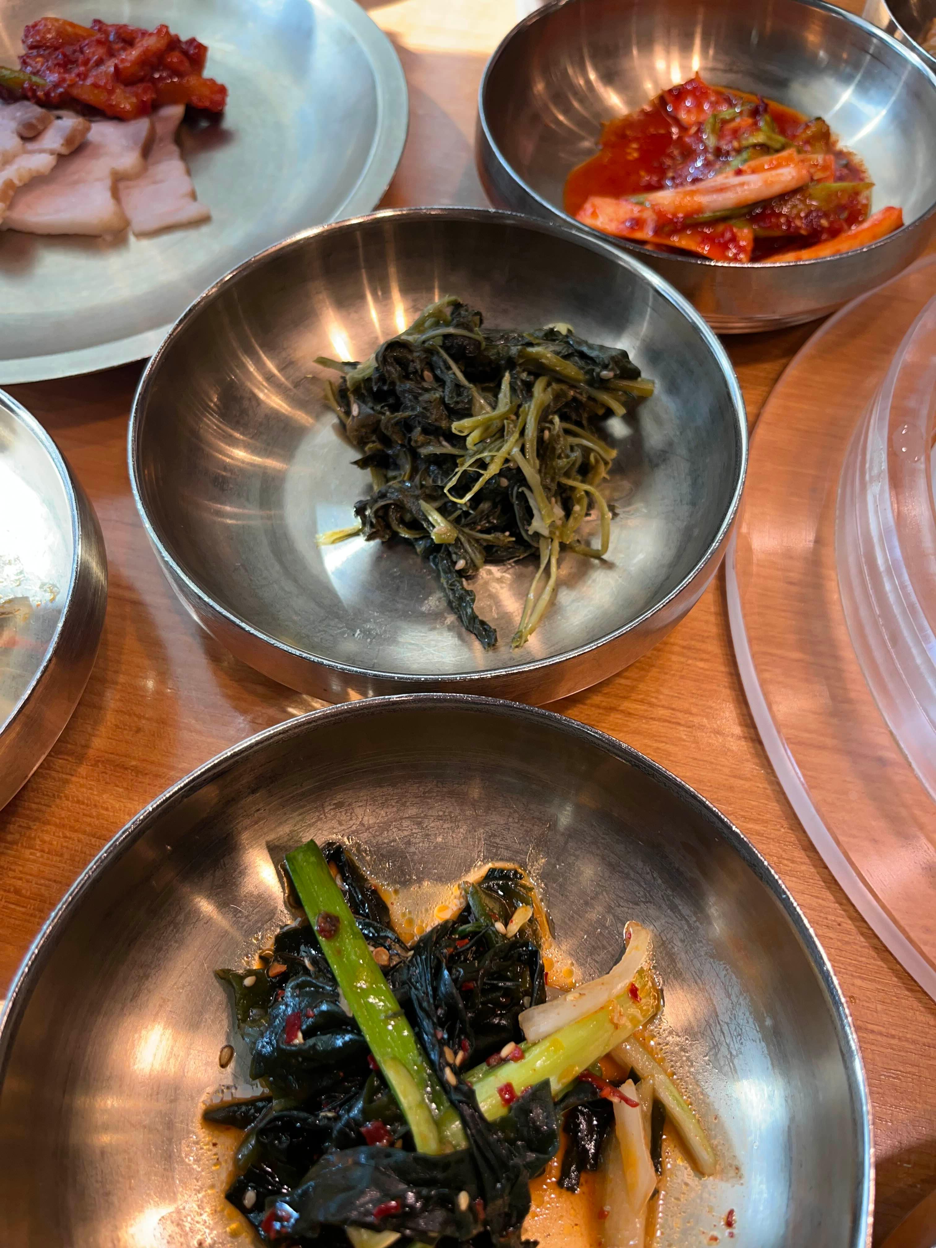 저는 개인적으로 말린 가지무침과 묵은지볶음이 제일 맛있었던 것 같아요. 개인적으로 장모밥상의 음식들은 저와 남편 입맛에는 간이 너무 강하게 느껴져서 입안이 얼얼해지는 기분이 들었어요. 다른 테이블의 손님들을 보니 모두들 맛있게 드시더라고요. 평소에 슴슴하게 드시는 분들에게는 조금 자극적인 맛이 아닐까 싶기도 해요.
