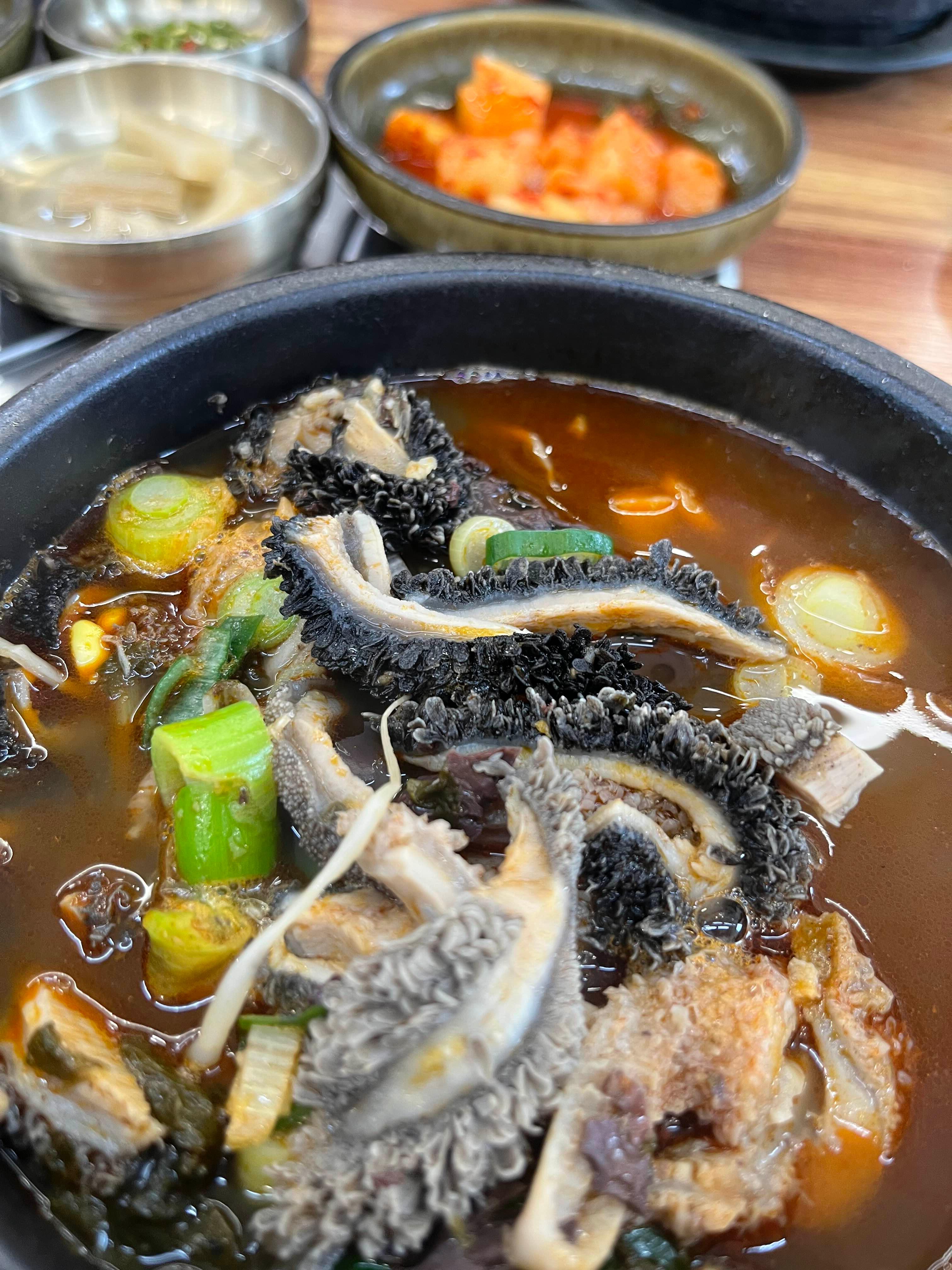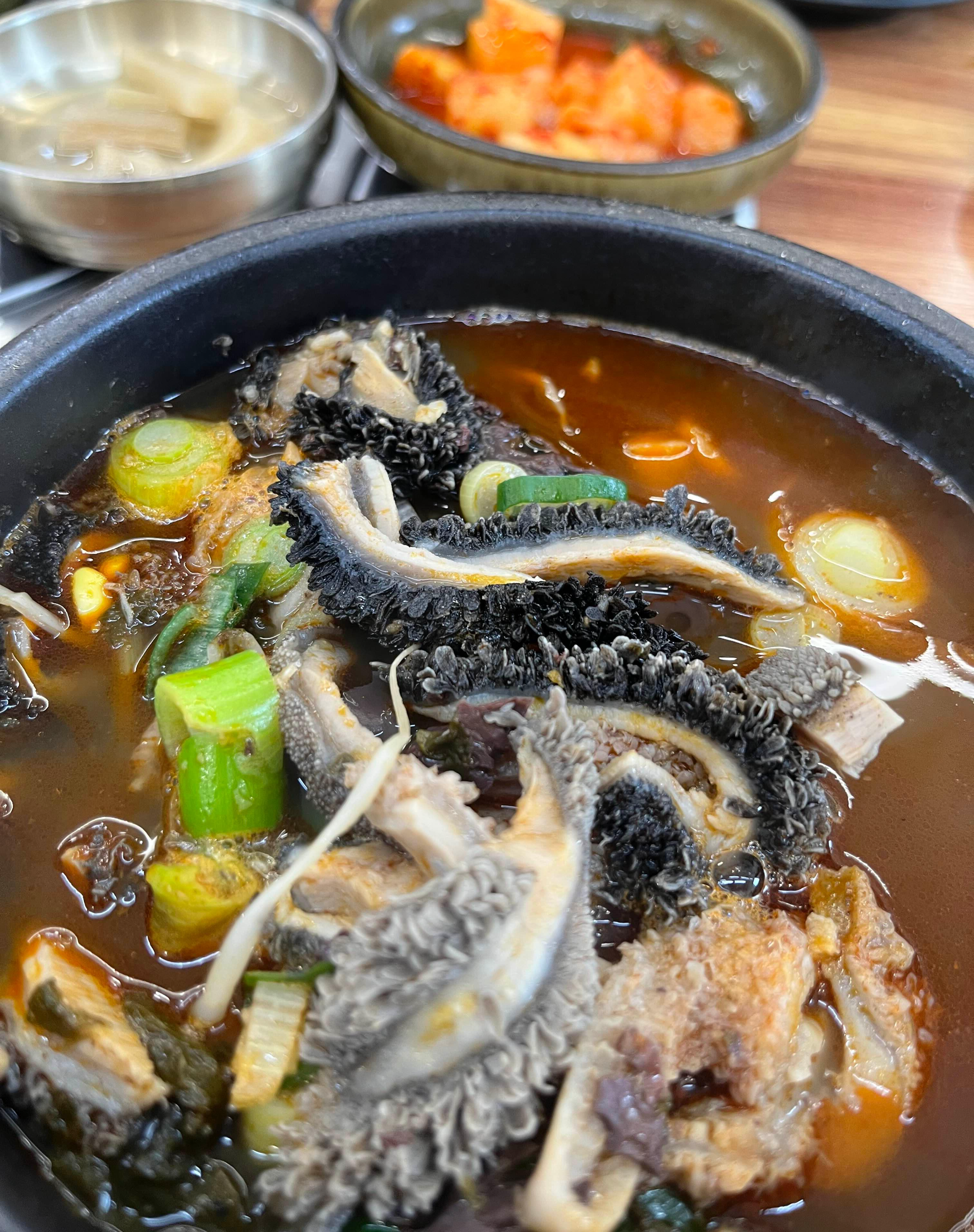 큼지막한 선지는 잡냄새가 전혀 나지 않으면서도 부드럽고 고소했어요. 선지에는 미네랄과 펩타이드 성분이 들어 있는데, 알코올 해독과 배출을 촉진시켜 숙취 해소에도 탁월한 효능이 있고, 중금속 배출에도 좋다고 알려져 있습니다.