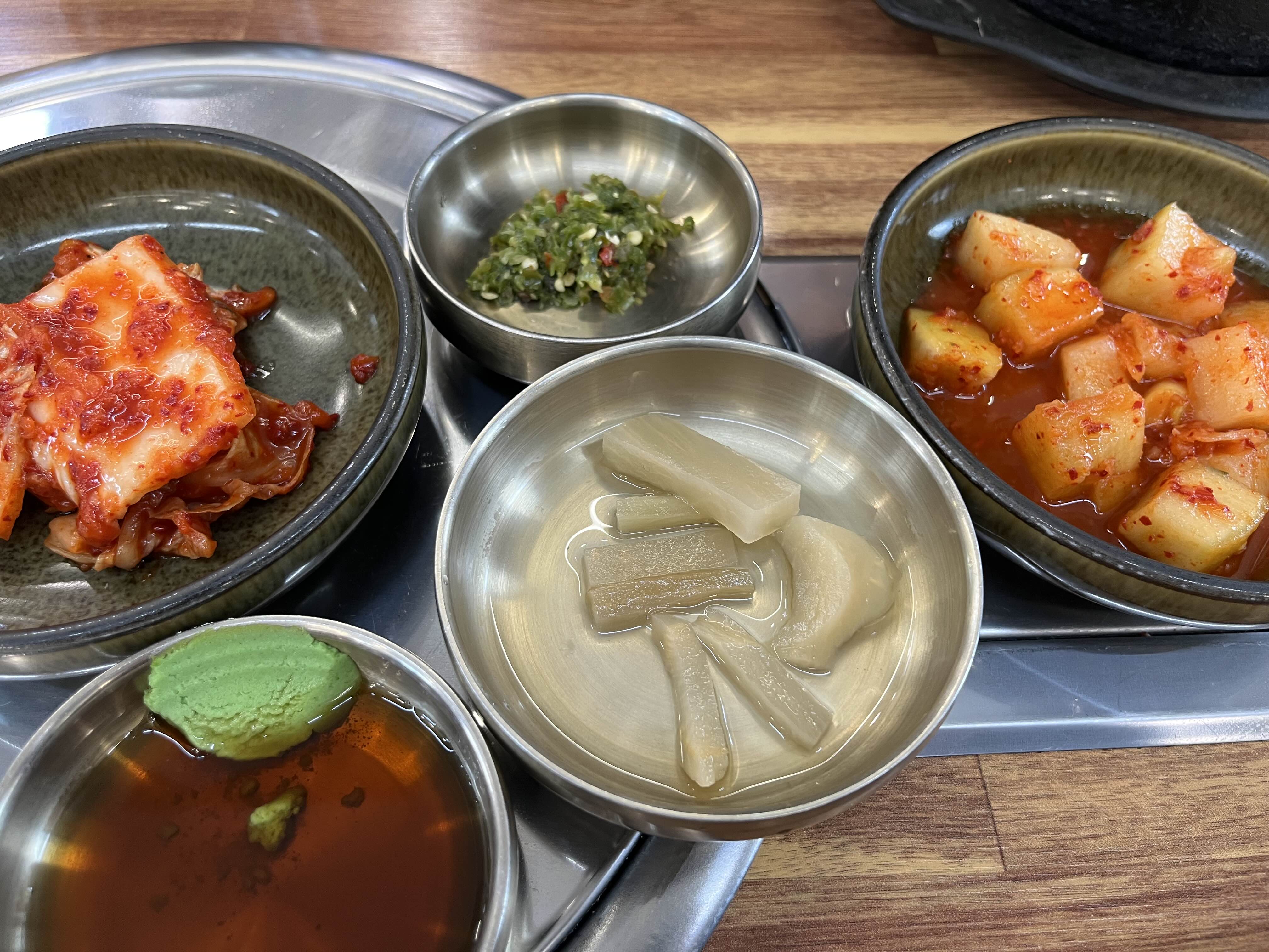 기본 찬으로는 깍두기와 배추김치, 고추절임, 무짠지가 나오고요. 부족한 반찬들은 셀프코너에서 직접 갖다 드시면 된답니다.