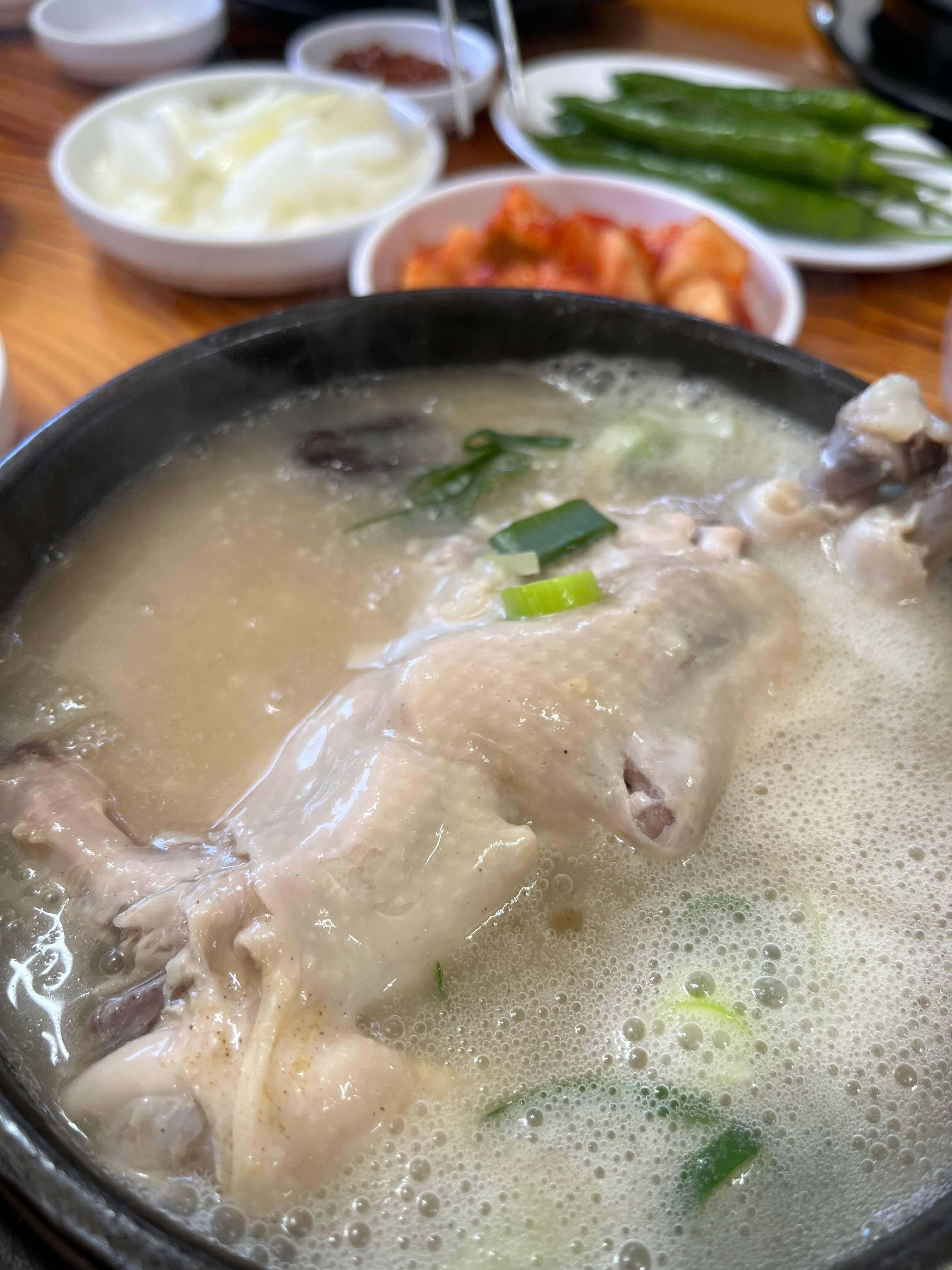 내포 한방삼계탕은 국물까지 다 먹게 되네요. 깍두기나 양파피클, 아삭한 오이고추 등은 그릇이 바닥을 보이기 전에 어르신께서 바로 채워주셔서 편하게 식사할 수 있는 것 같아요. 아빠와 함께 내포 한방삼계탕에서 맛있는 보양식을 잘 먹었습니다.