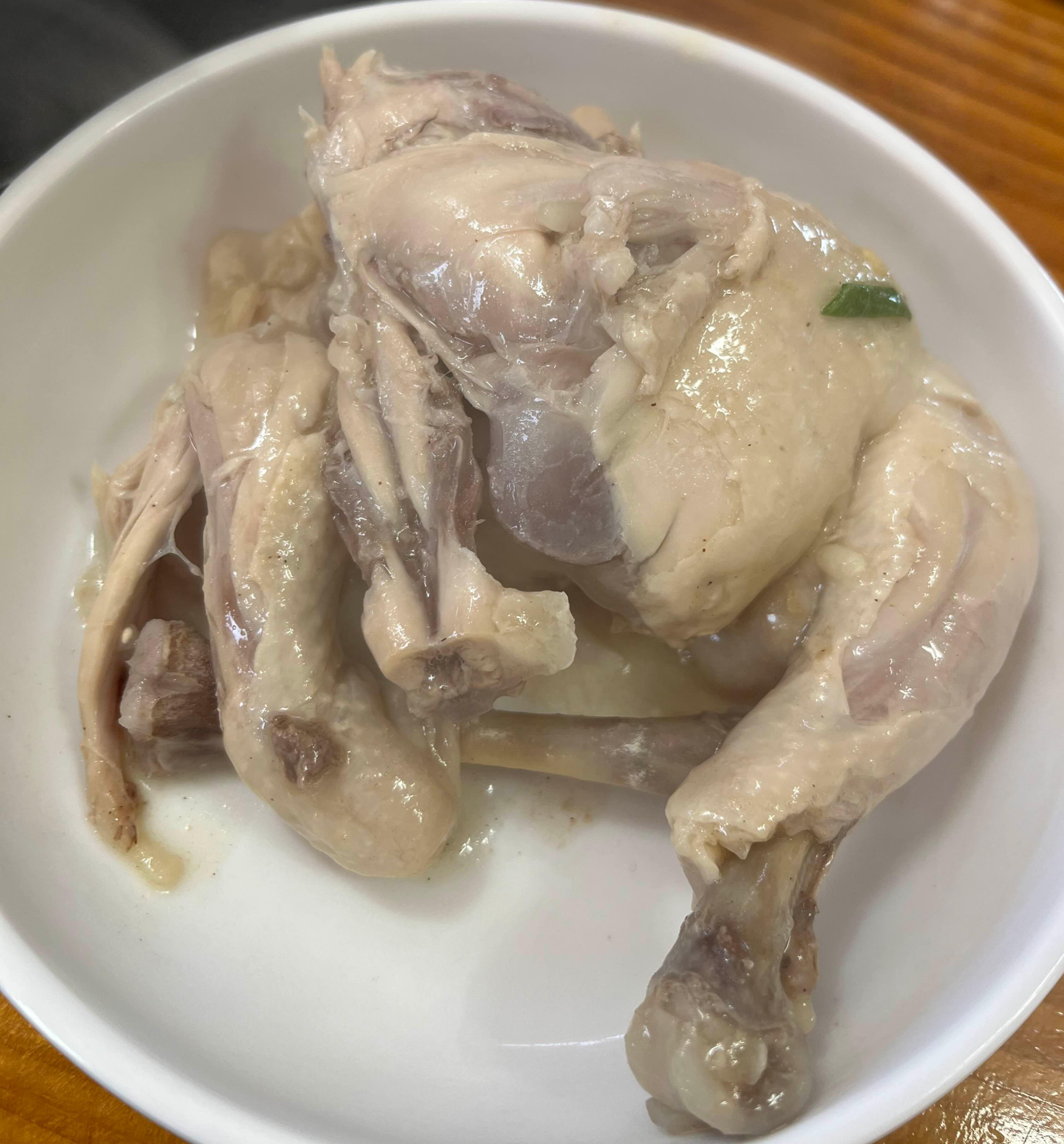 너무 뜨거워서 먼저 뚝배기에서 닭고기를 꺼내 놓았어요. 고기가 부드러우면서도 촉촉해서 식감이 참 좋았어요.