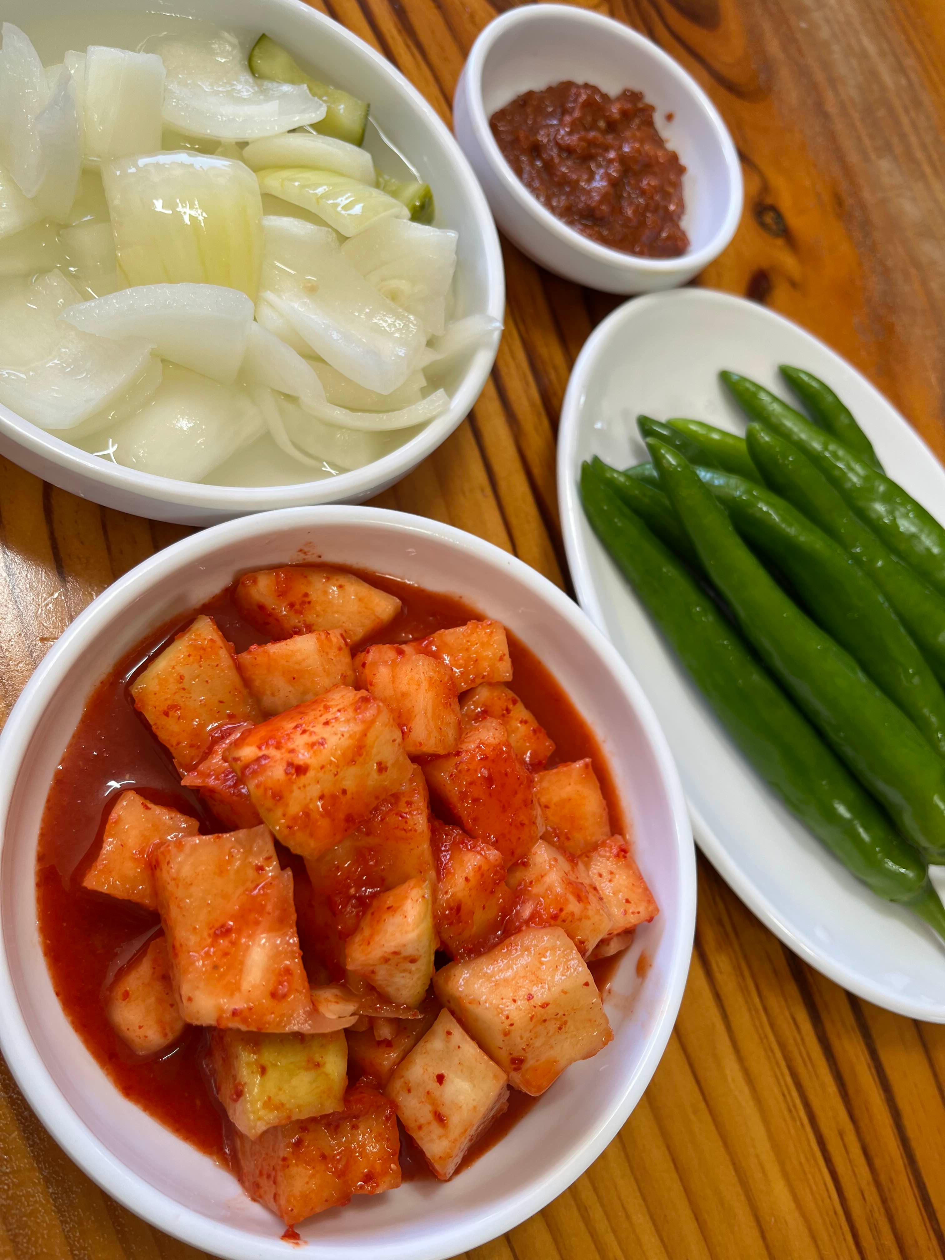 내포 한방삼계탕은 삼계탕 못지않게 깍두기가 참 인기가 많은데요. 시원하면서도 칼큼한 맛이 참 맛있어요.