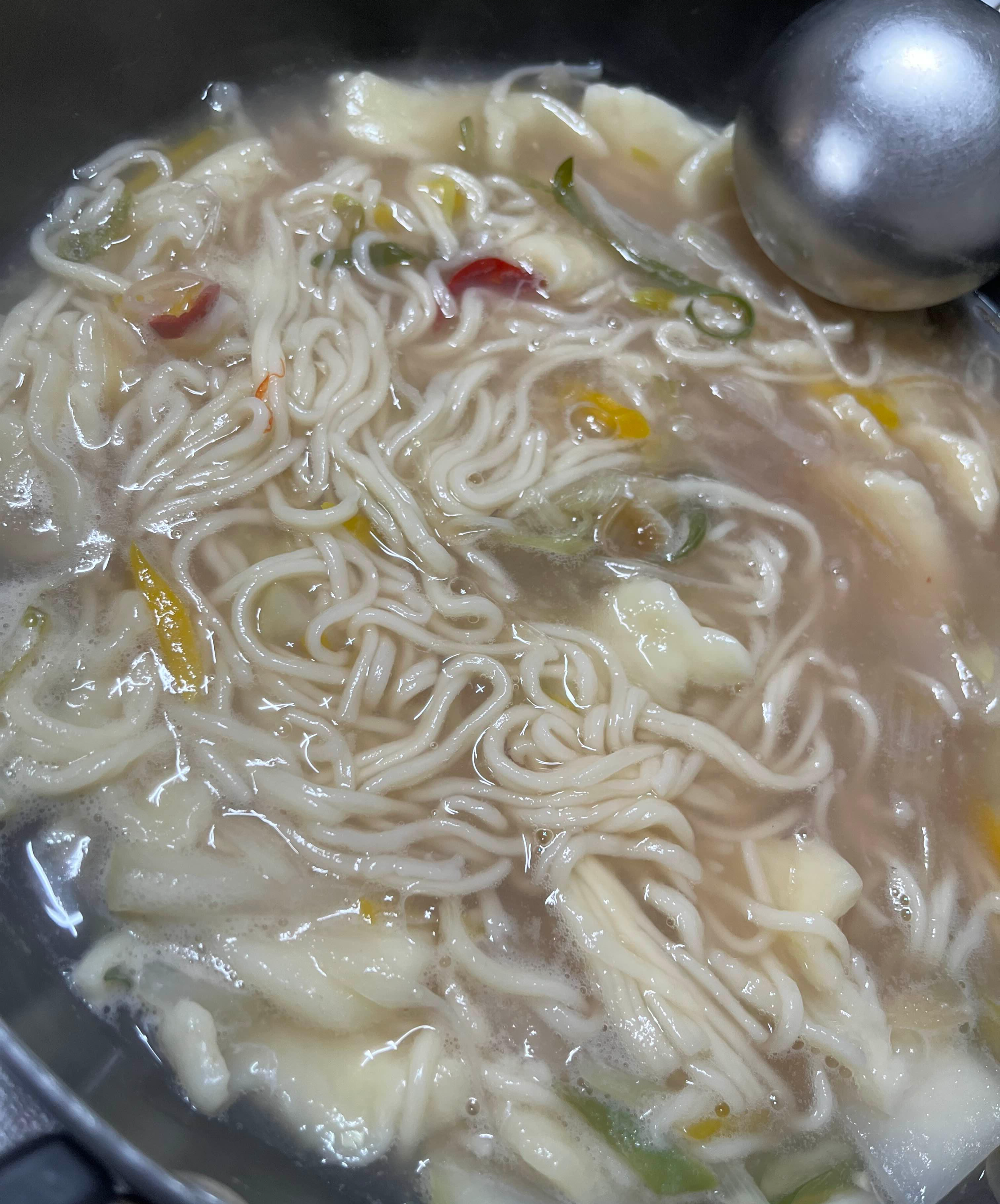 가족들이 낙지볶음에 시선을 빼앗겨버리자, 박속밀국낙지탕이 샘이 났는지 수제비와 칼국수가 첨벙 뛰어들어 자신들 좀 보라고 하네요.