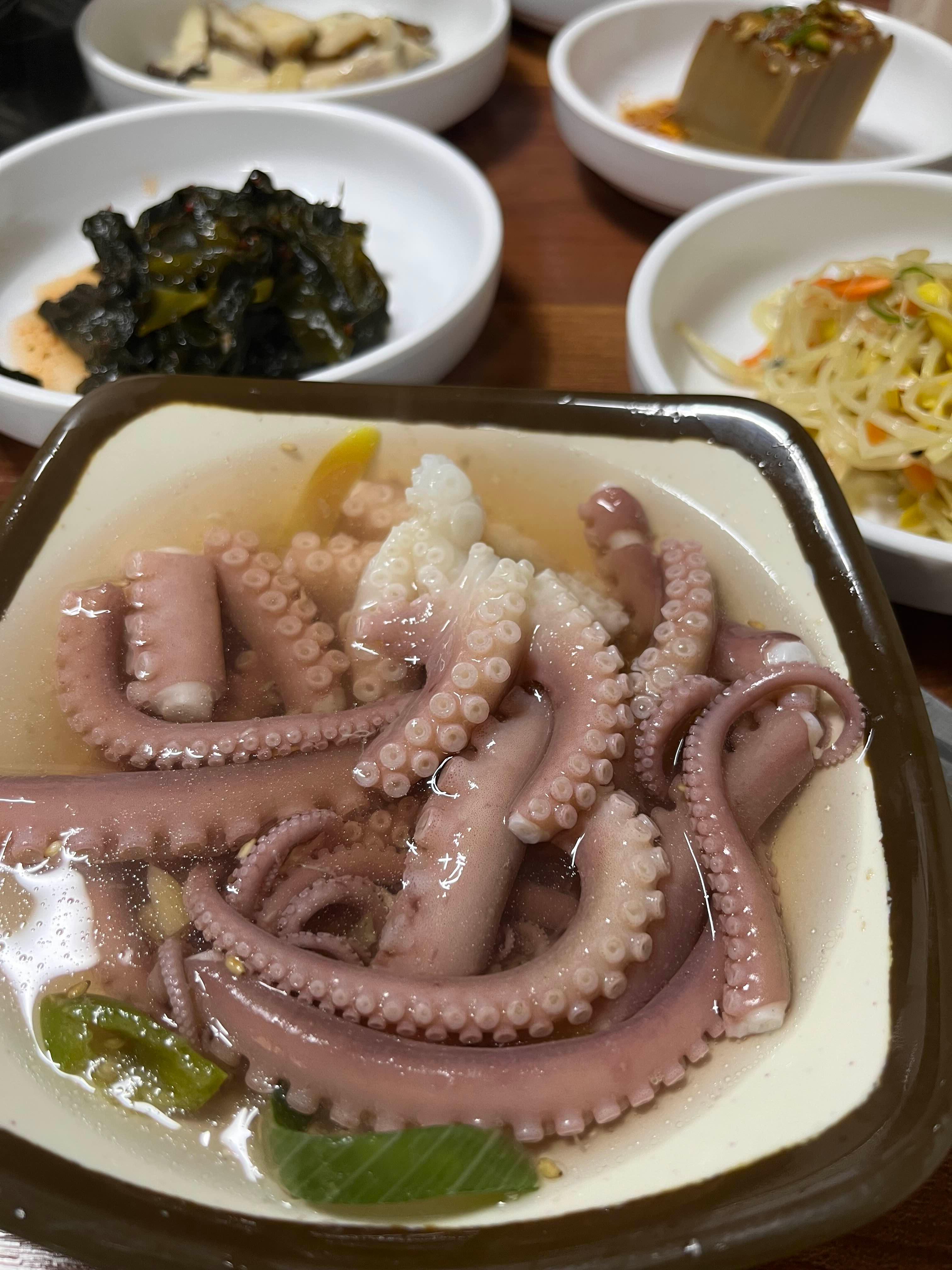칼국수와 수제비가 함께 제공되어 박속밀국낙지탕만으로도 든든한 한 끼로 충분할 것 같아요. 큰오빠가 미리 여러 가지 메뉴를 예약해 놓아서 저희 가족 모두 푸짐하고 배부르게 잘 먹었습니다. 박속밀국낙지탕과 낙지볶음, 꼬물꼬물산낙지 중에서 저는 모두 맛났지만, 특히 산낙지 맛을 잊을 수가 없을 것 같아요.