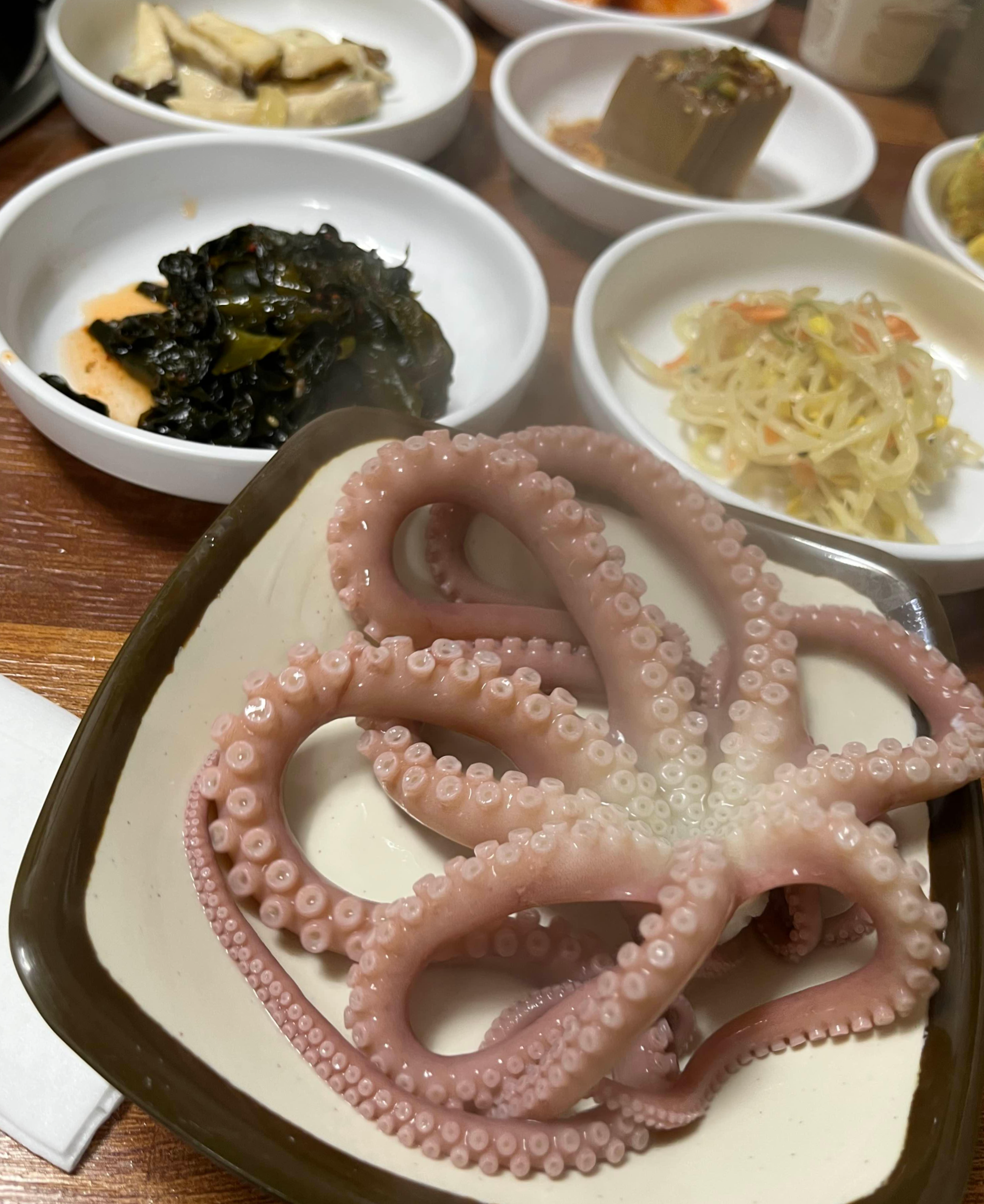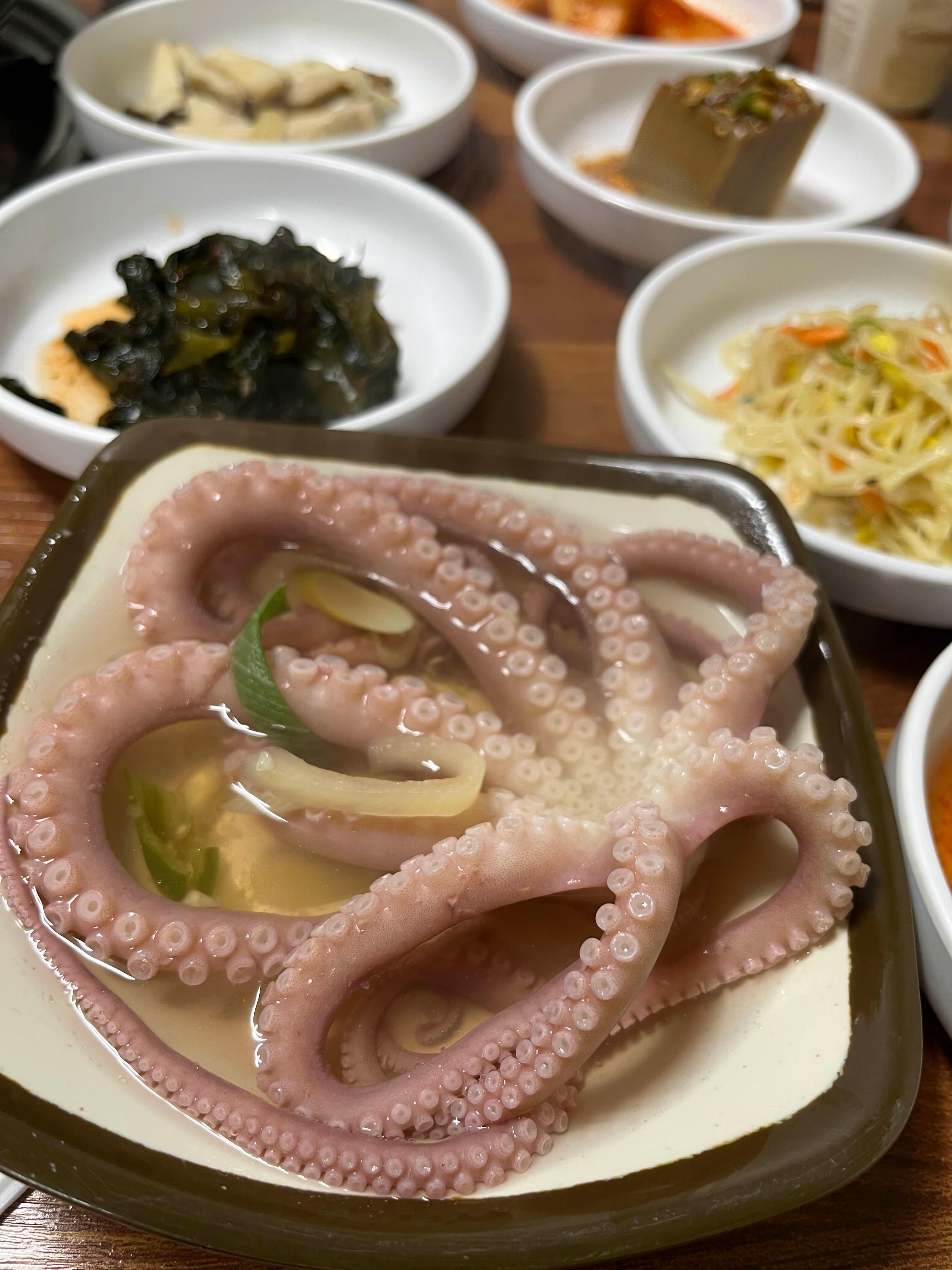 낙지머리가 익는 동안, 낙지볶음이 나왔어요. 꿈틀꿈틀 움직이는 낙지한테 조금 미안한 마음이 들었지만, 매콤하면서도 감칠맛이 나는 낙지볶음이 무척이나 맛있어서 밥 한 공기를 찾지 않을 수 없었네요.