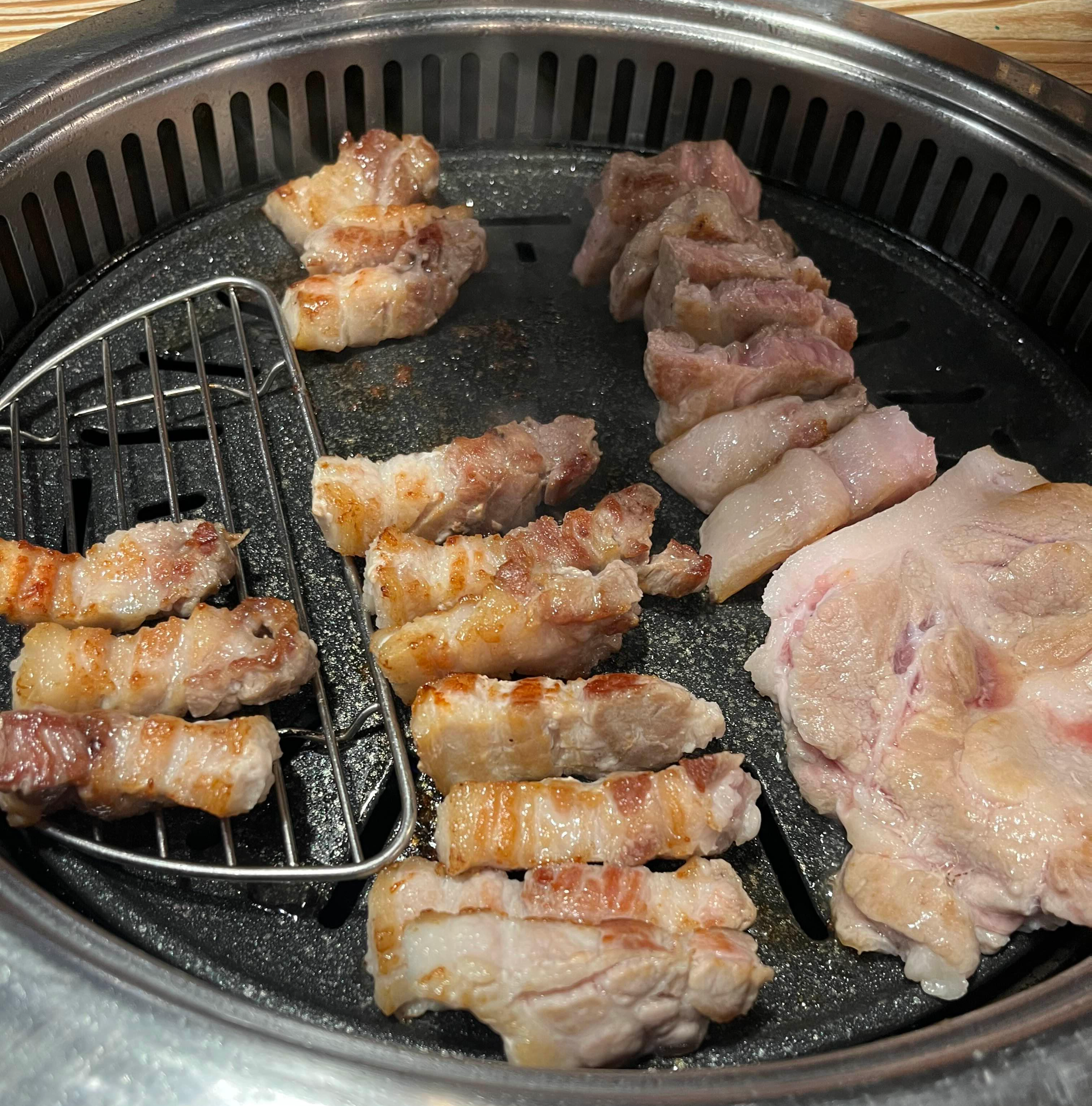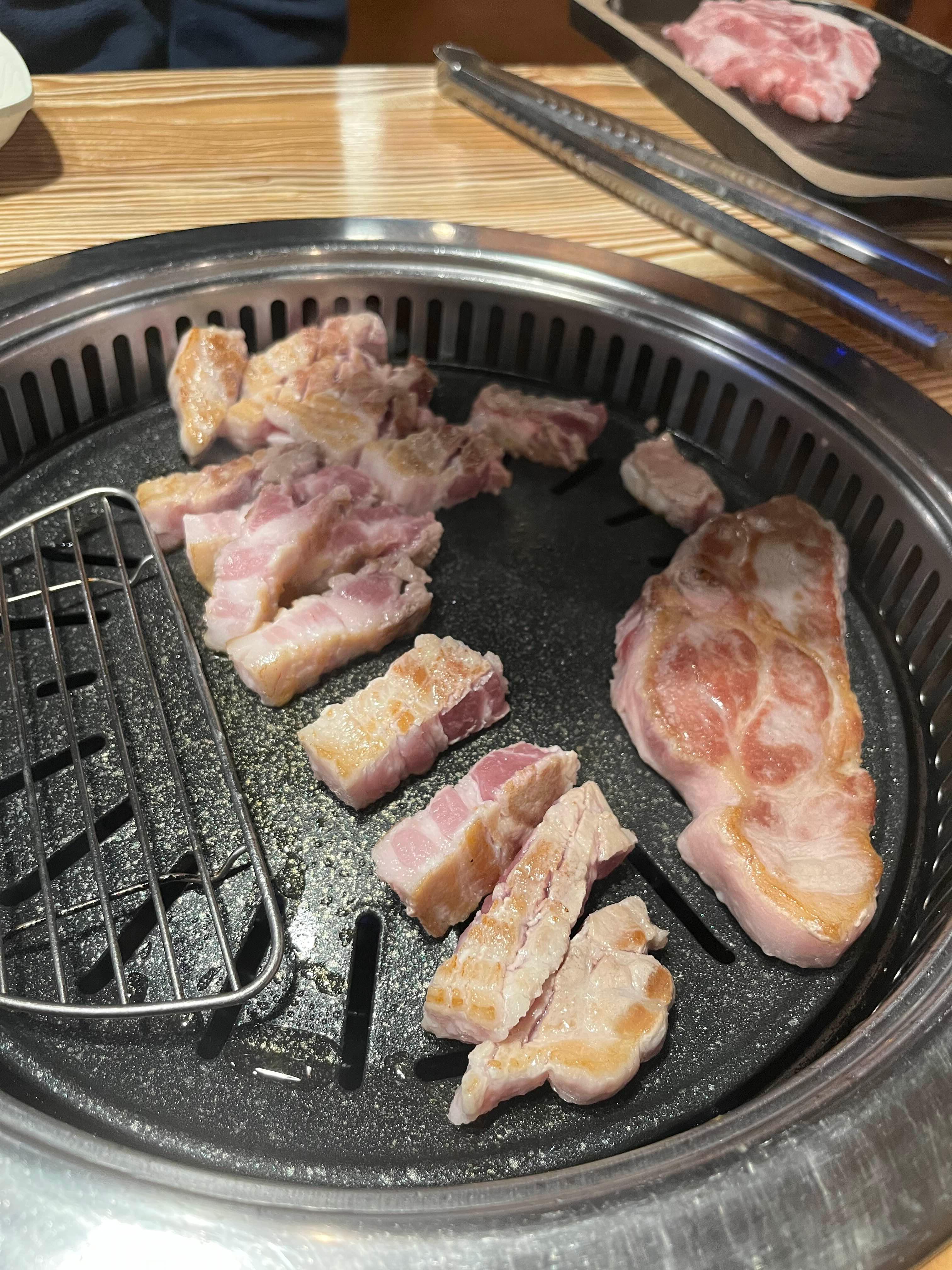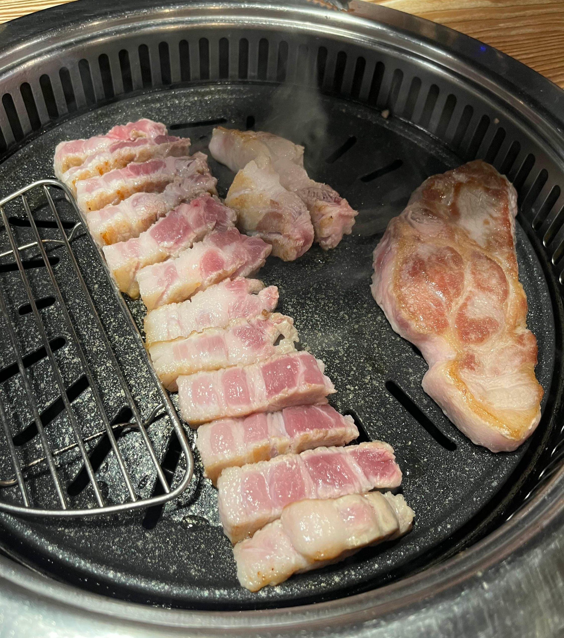 자리에 앉자마자 바로 삼겹살과 목살을 주문했습니다. 호미정은 도드람 한돈만을 취급하여 신선한 삼겹살과 목살 등을 맛볼 수 있는, 문정동의 대표 고기 맛집입니다.