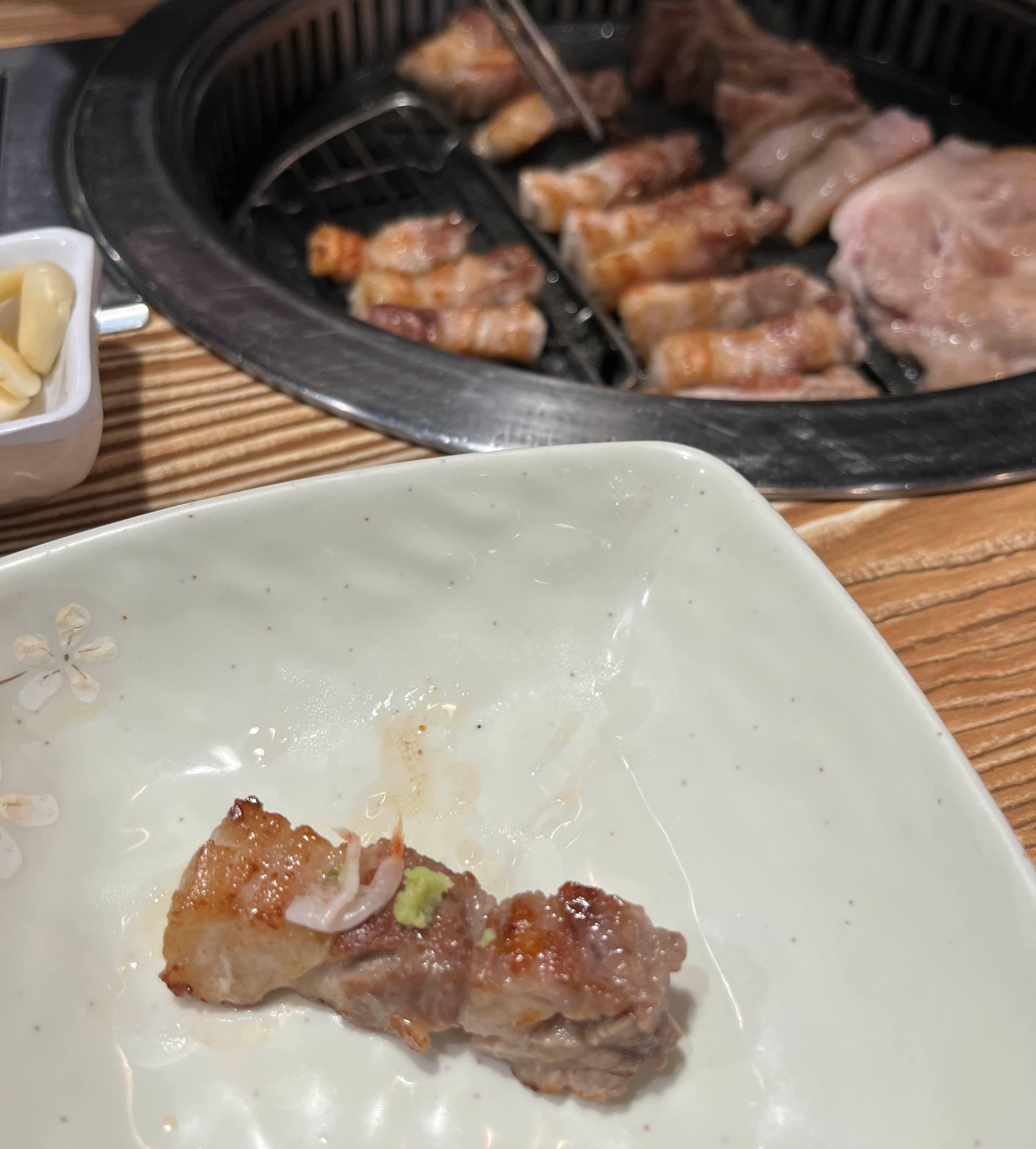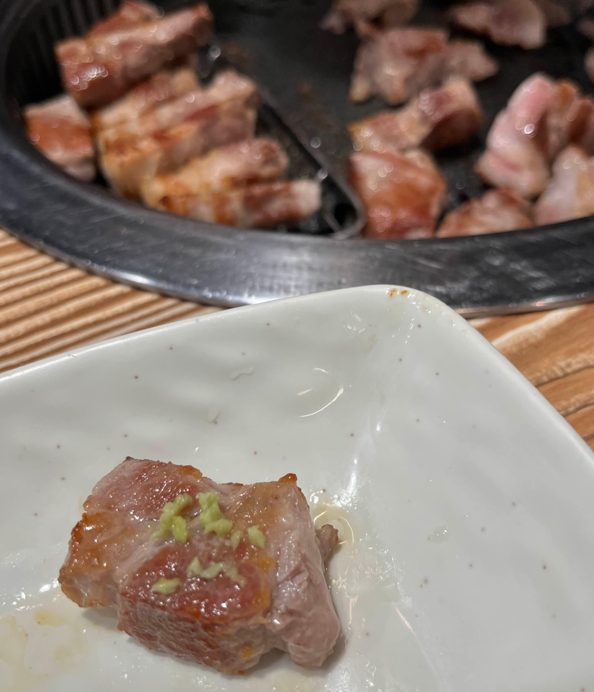 생고추냉이와 새우젓을 고기에 올려 먹으면, 군더더기 없는 고기 맛을 즐길 수 있어요.